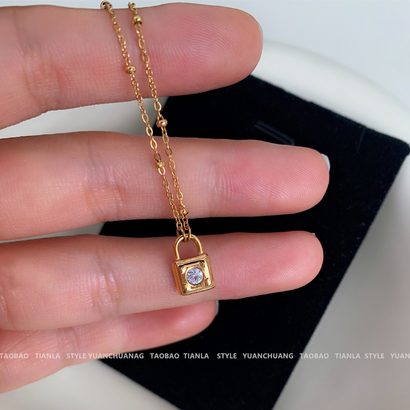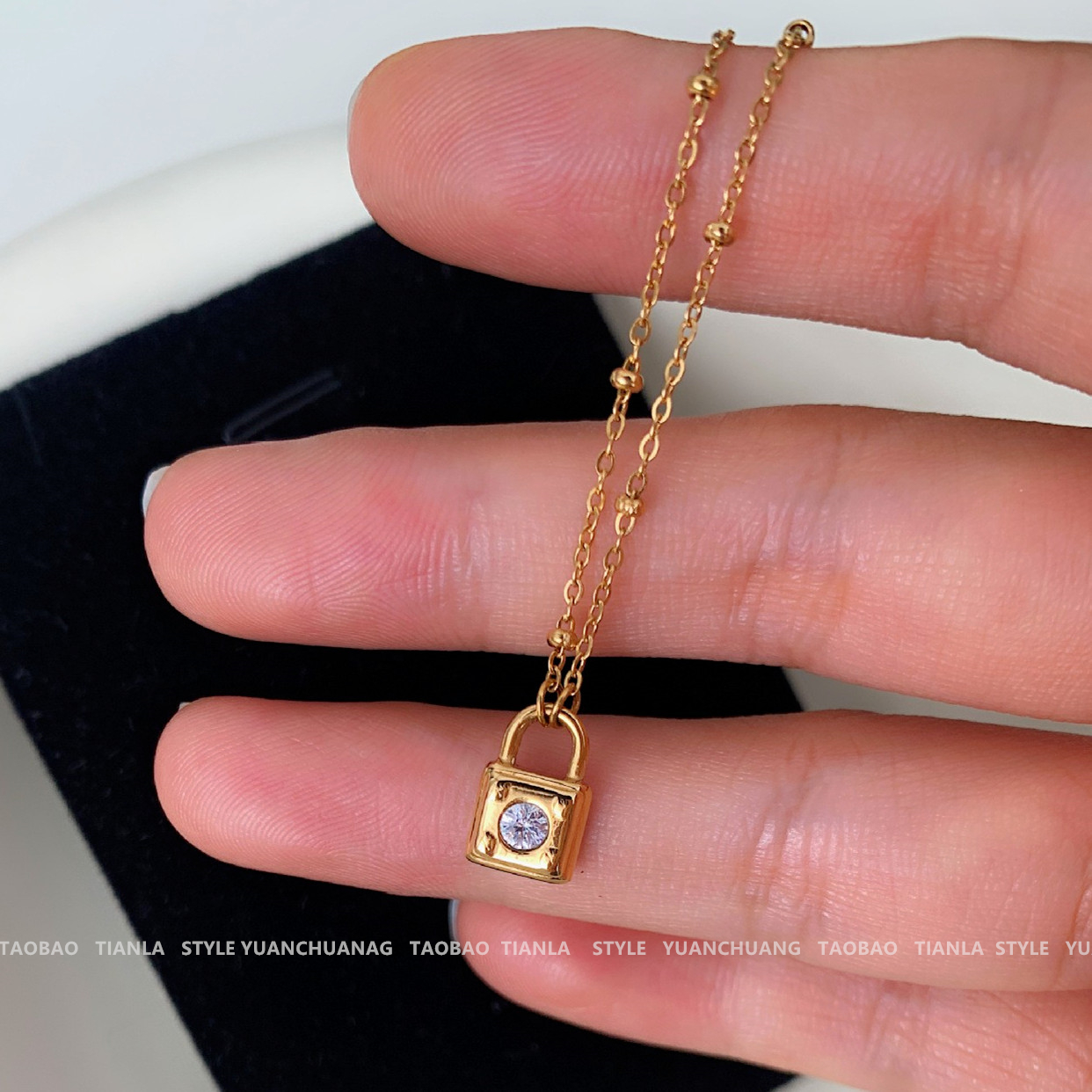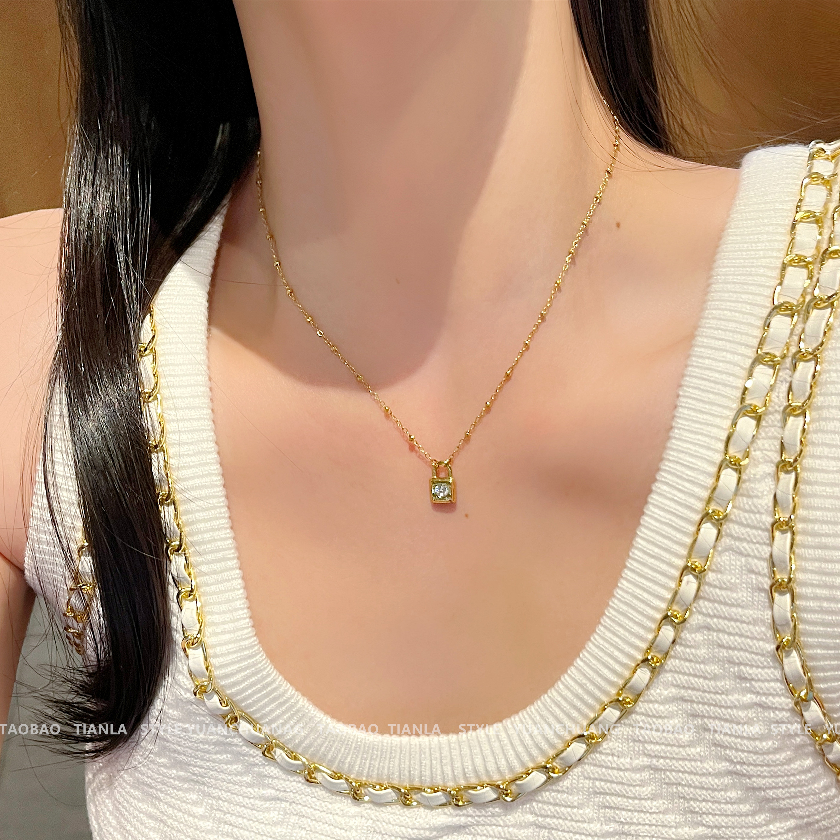 洗澡不用摘钛钢精致小锁头项链女轻奢小众设计高级感锁骨链颈链