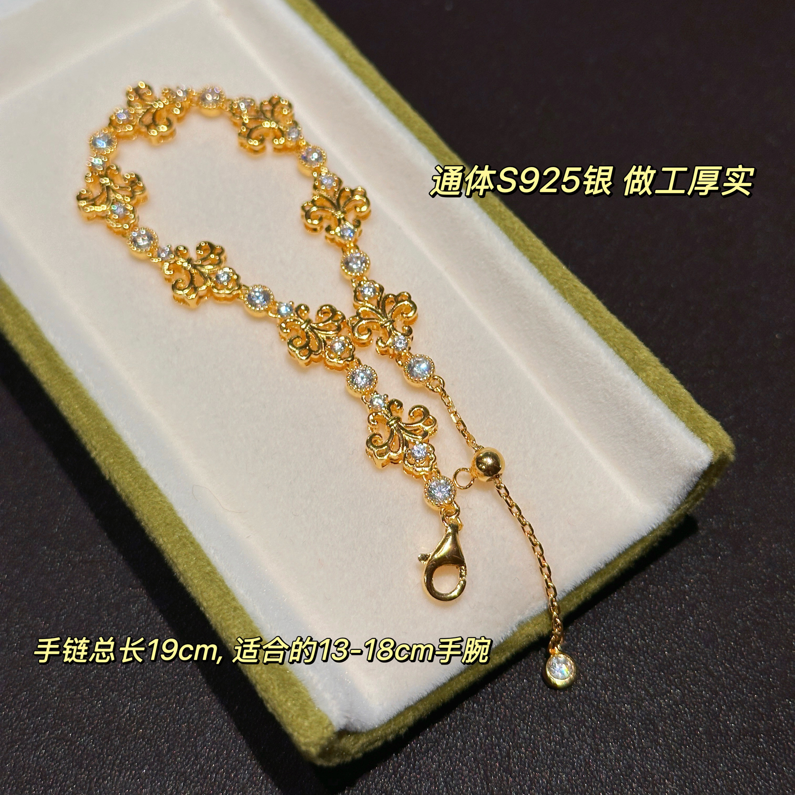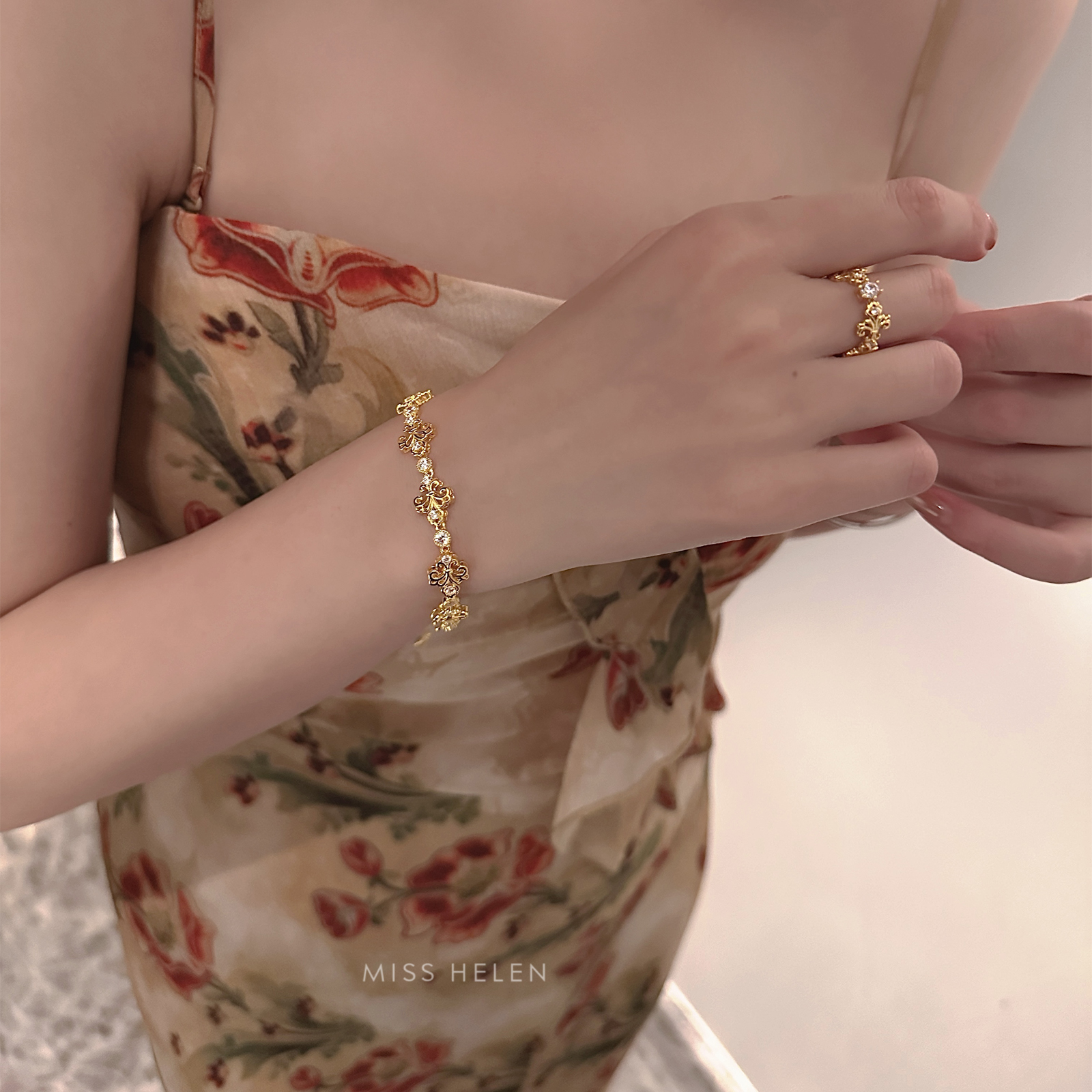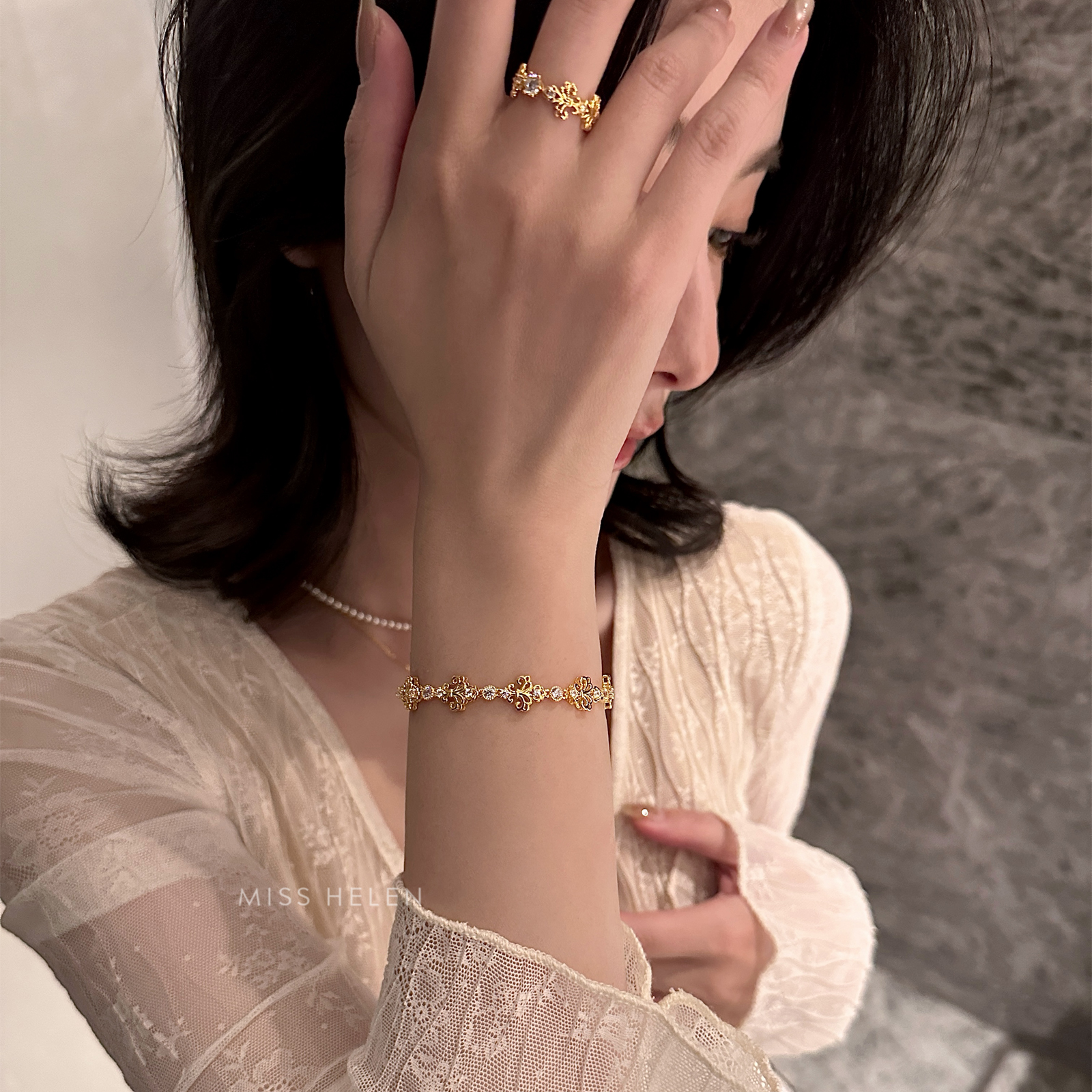 MISS HELEN蕾丝鸢尾花」S925银手链女法式轻奢微镶锆石镂空首饰夏
