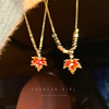 钛钢红色枫叶吊坠项链女新年小众锁骨链轻奢高级感秋冬毛衣链配饰