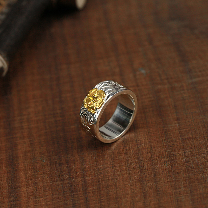 牛钝 2023 新款蔷薇花点唐金草戒指 925纯银18k24k手工 男款戒指