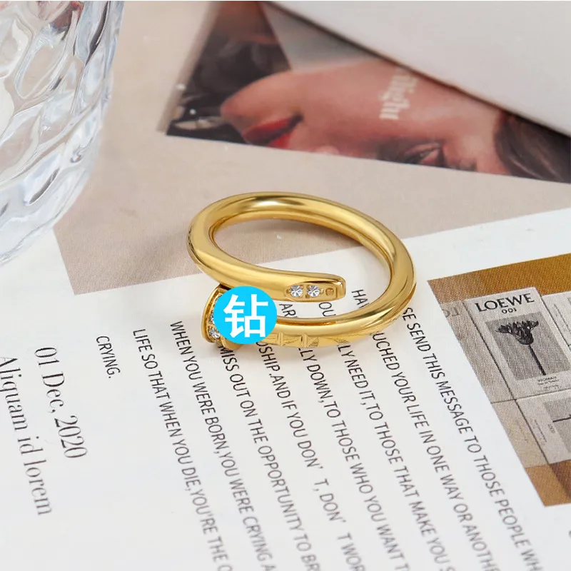 时尚卡家高版本钉子戒指女小众电镀18K金不掉色高级感不锈钢指环