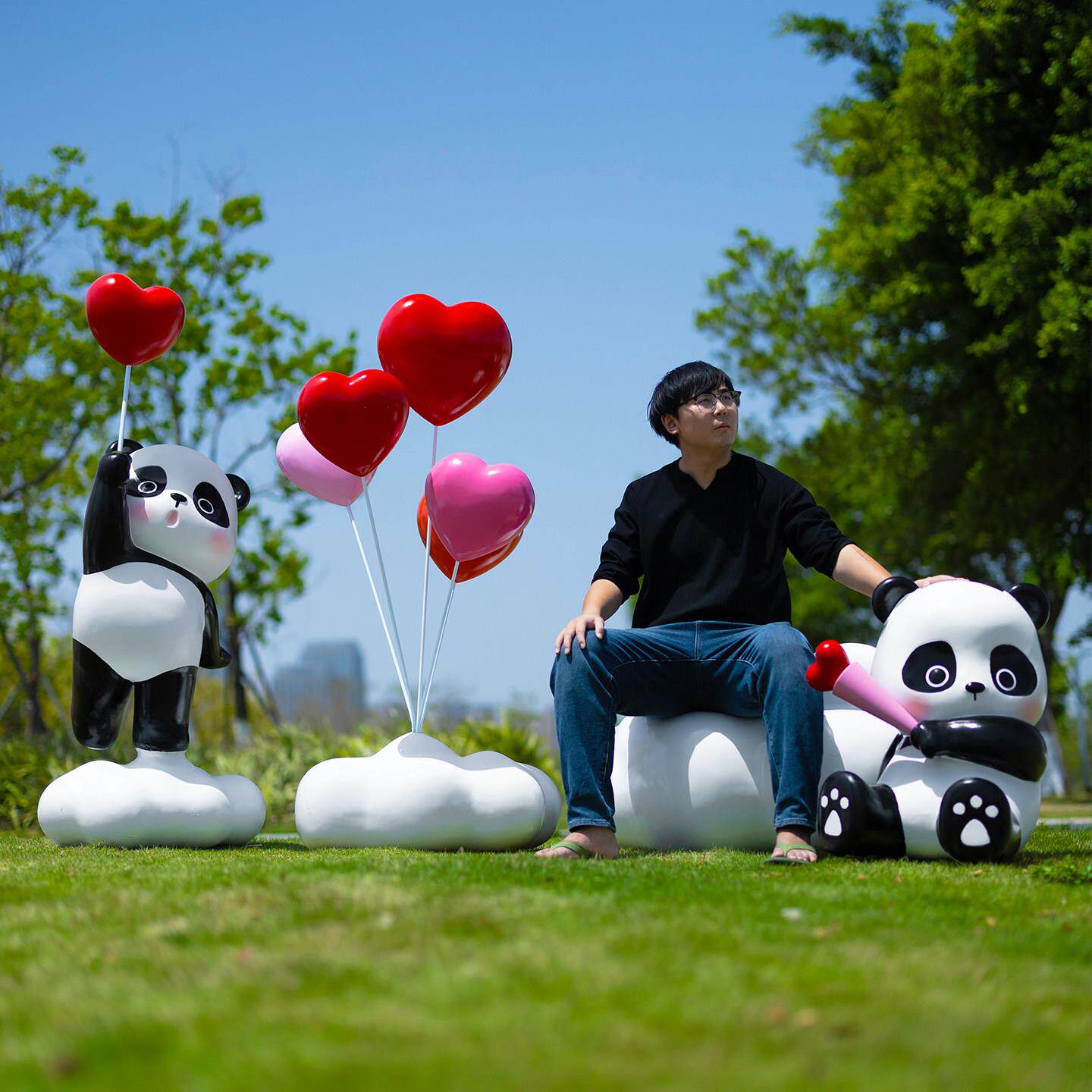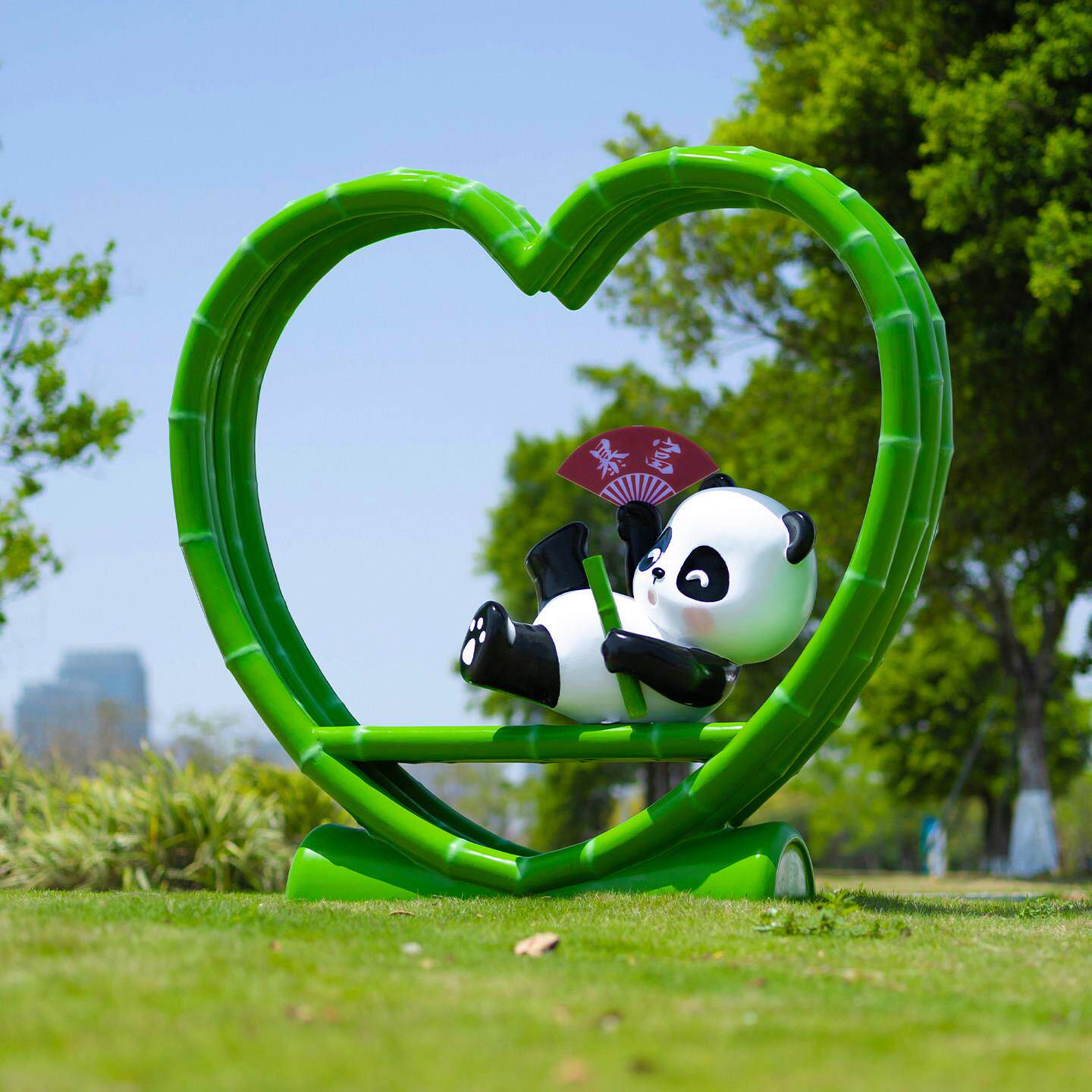 玻璃纤维卡通熊猫雕塑商场广场萌宠装置艺术景观户外动物装饰摆饰