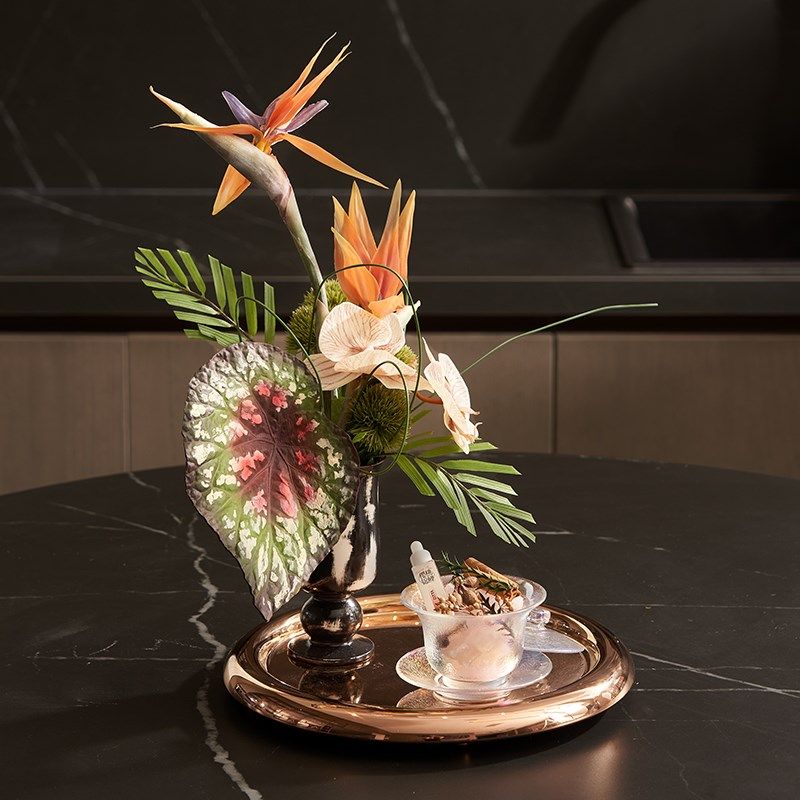 新中式样板房客厅角几茶几饰品陶瓷花瓶软装设计托盘花器组合摆件