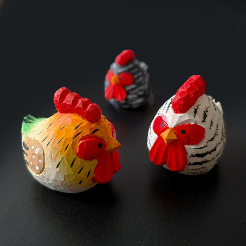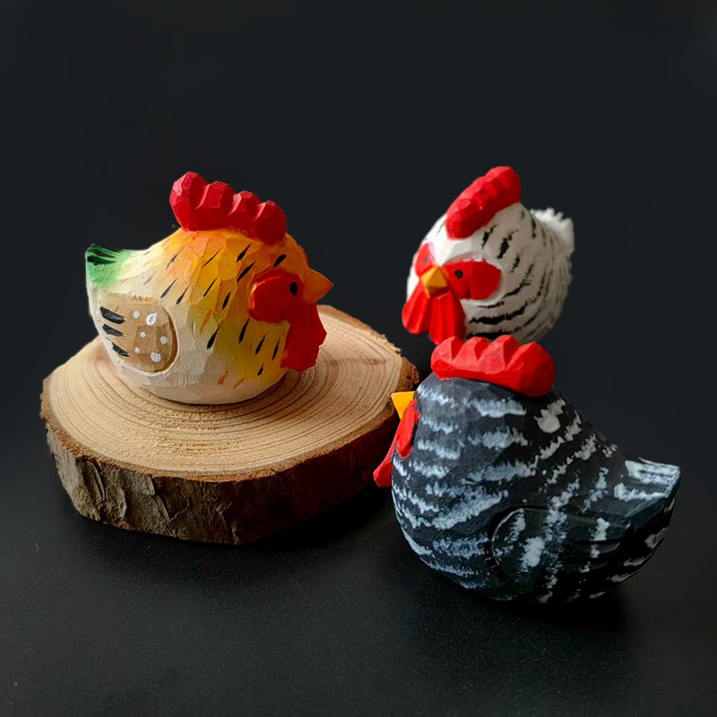 木雕摆件小公鸡实木雕刻手工彩绘桌面工位摆件背包车载钥匙挂件