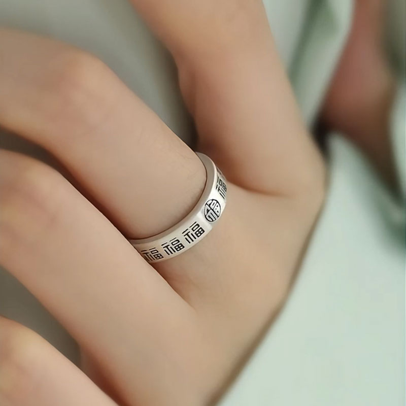925银福字戒指女新中式国风平安喜乐小众高级感开口可调节食指戒