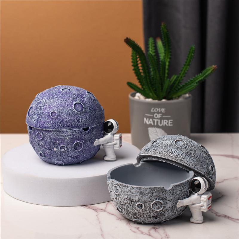 直销新款严选卡通烟灰缸创意摆件有盖宇航员桌面装饰家居树脂工艺