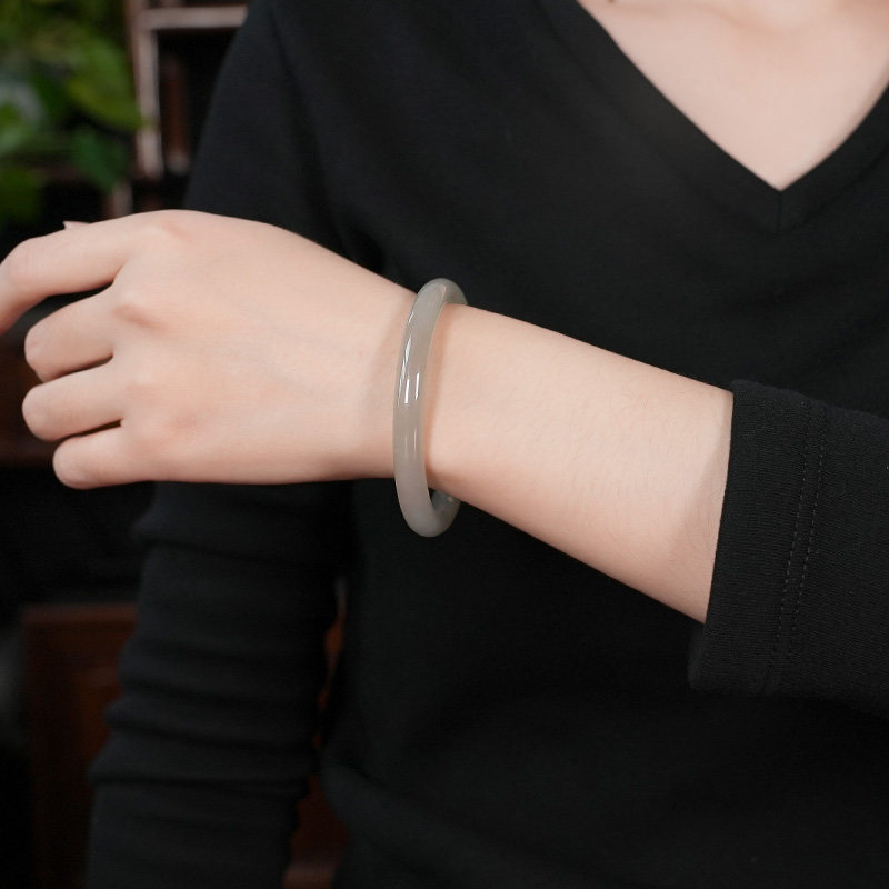 玉友和田玉手镯女款玉镯子淡冰粉紫细条小圈富贵玉镯子内径约52mm