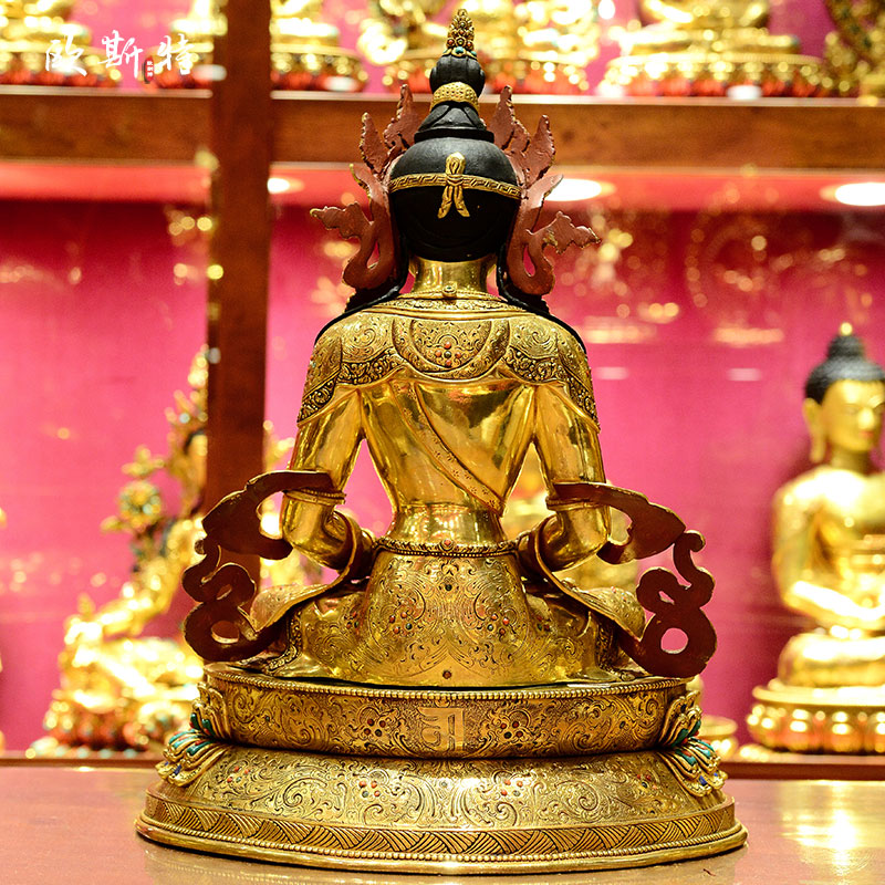 释迦族手工制作《常寿佛》尼泊尔进口全鎏金《长寿佛》铜像摆件
