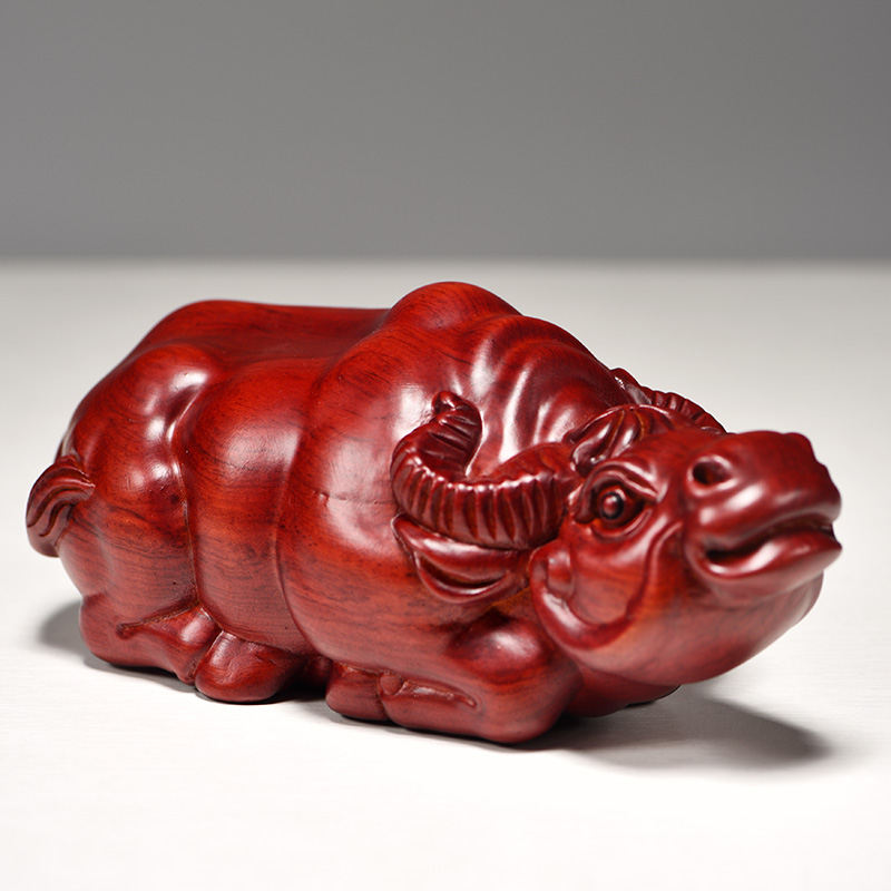 红色木雕卧牛摆件生肖牛实木雕刻水牛花梨木质家居装饰工艺品摆设