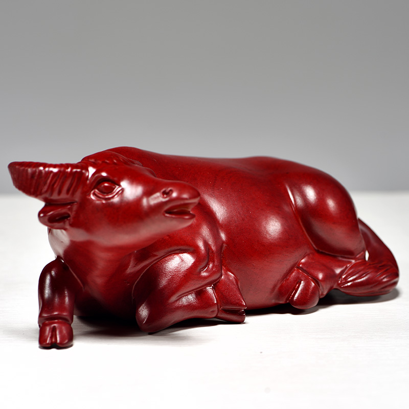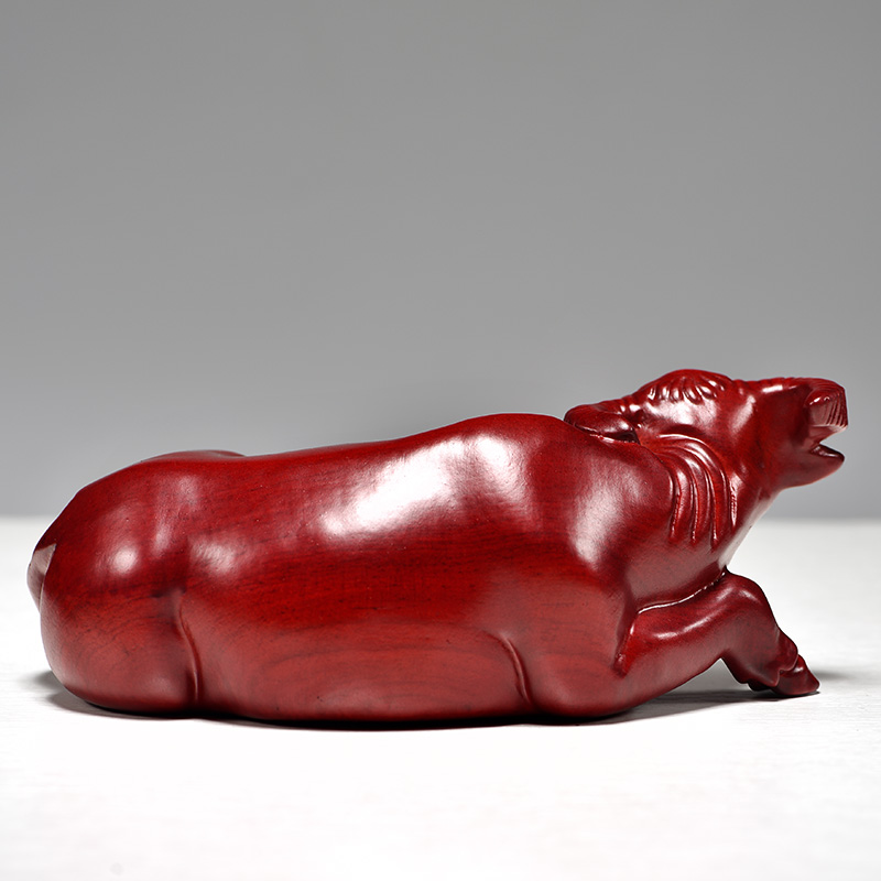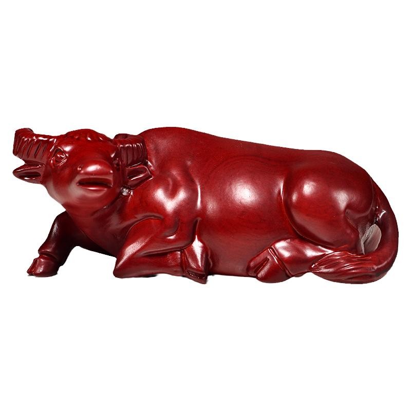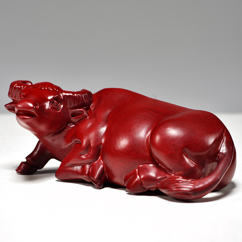 红色木质水牛摆件实木雕刻生肖卧牛家居办公室摆设开业送礼工艺品