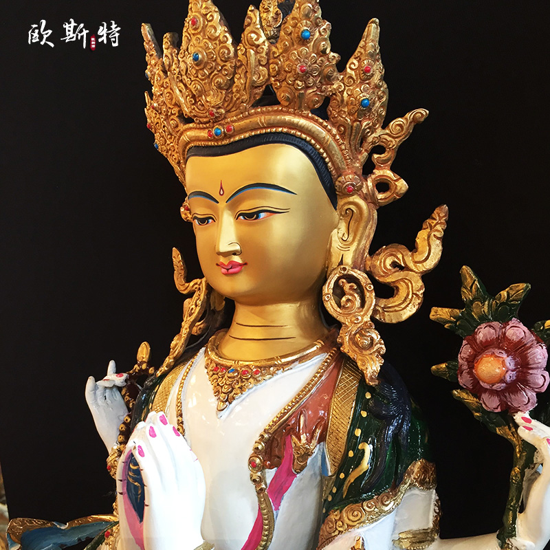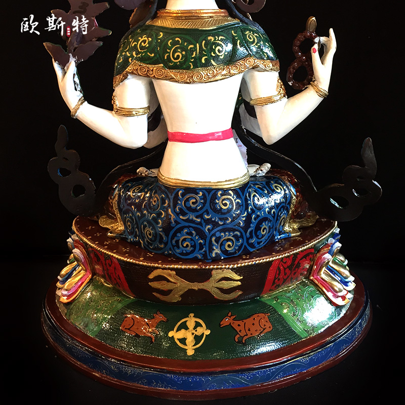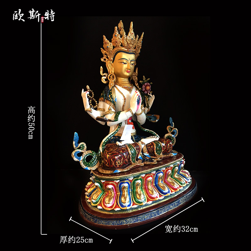 四臂观音菩萨家居饰品尼泊尔矿物颜料彩绘铜鎏金15寸客厅铜像摆件