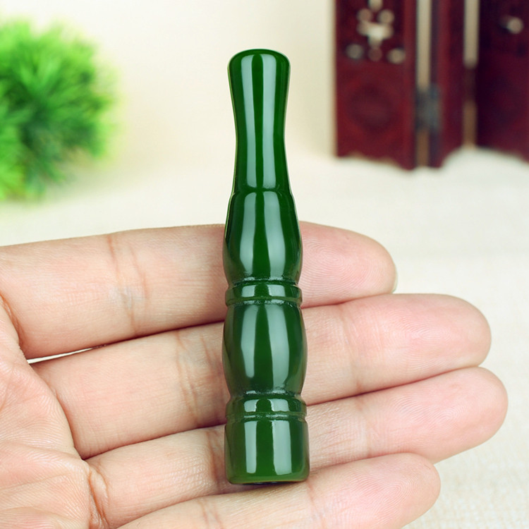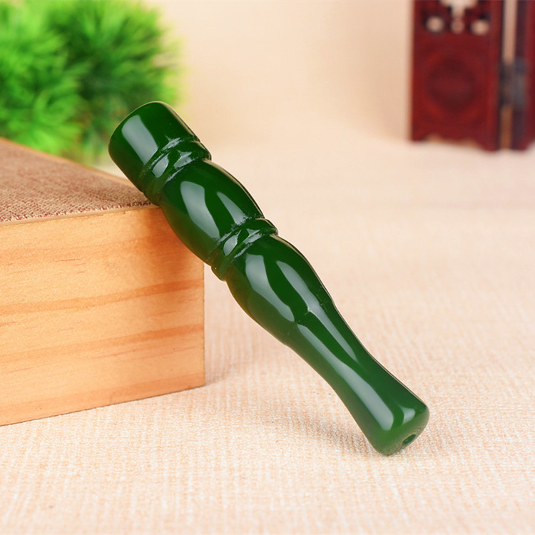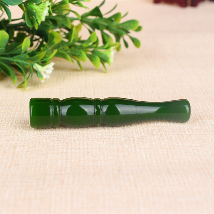 天然和田玉碧玉烟嘴老式烟杆老烟嘴菠菜绿碧玉竹节造型烟嘴把件