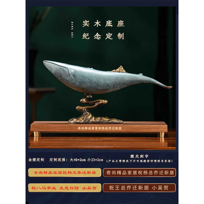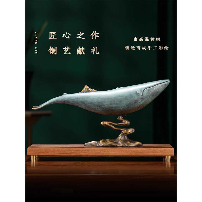 威弗列德金山鲸鱼全铜摆件办公室酒柜桌面工艺装饰品乔迁开业礼品