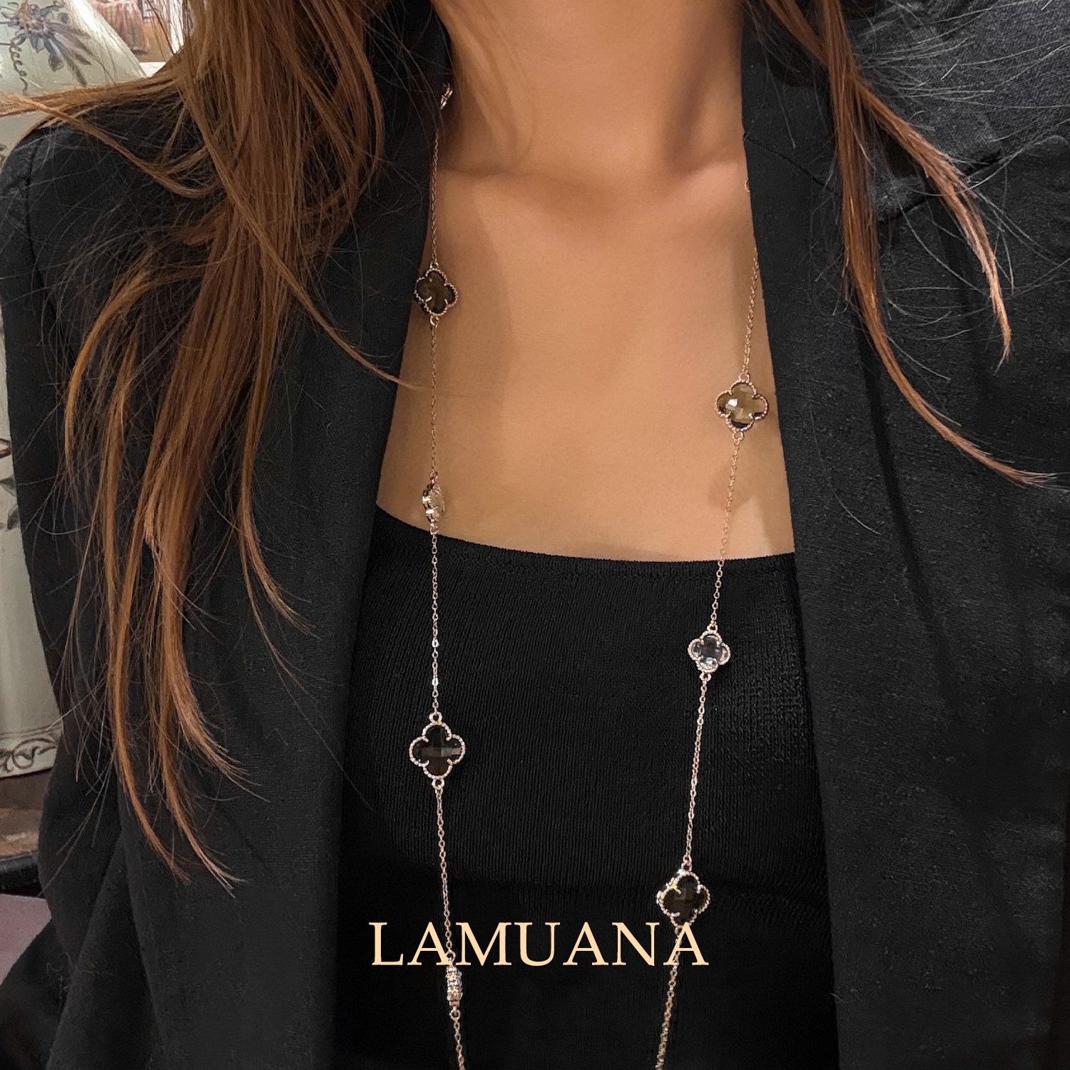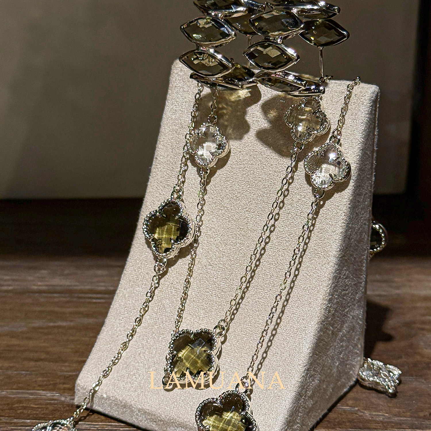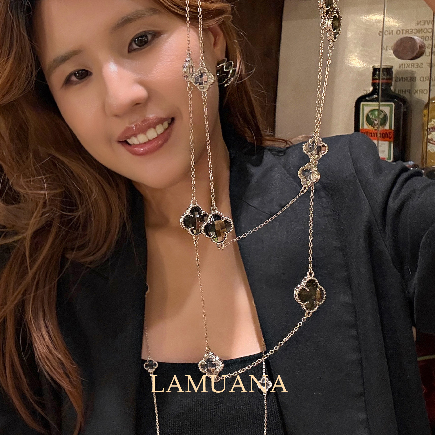 LAMUANA浅茶灰色四叶草项链小众设计感高级简约时尚长款颈链89382