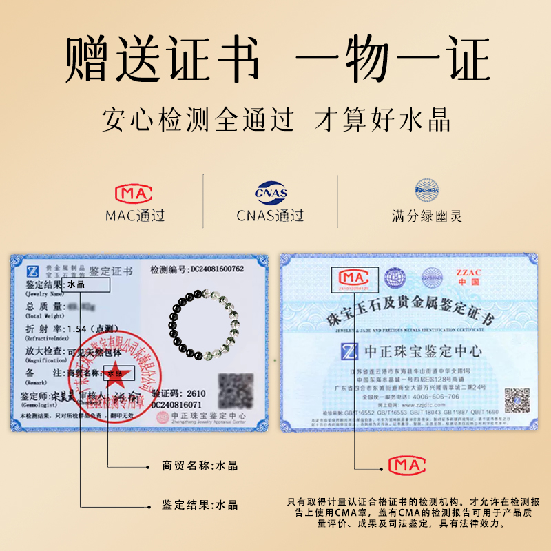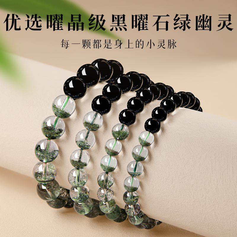 贺福缘天然绿幽灵手串女士黑曜石手链官方旗舰店男水晶转运珠招财