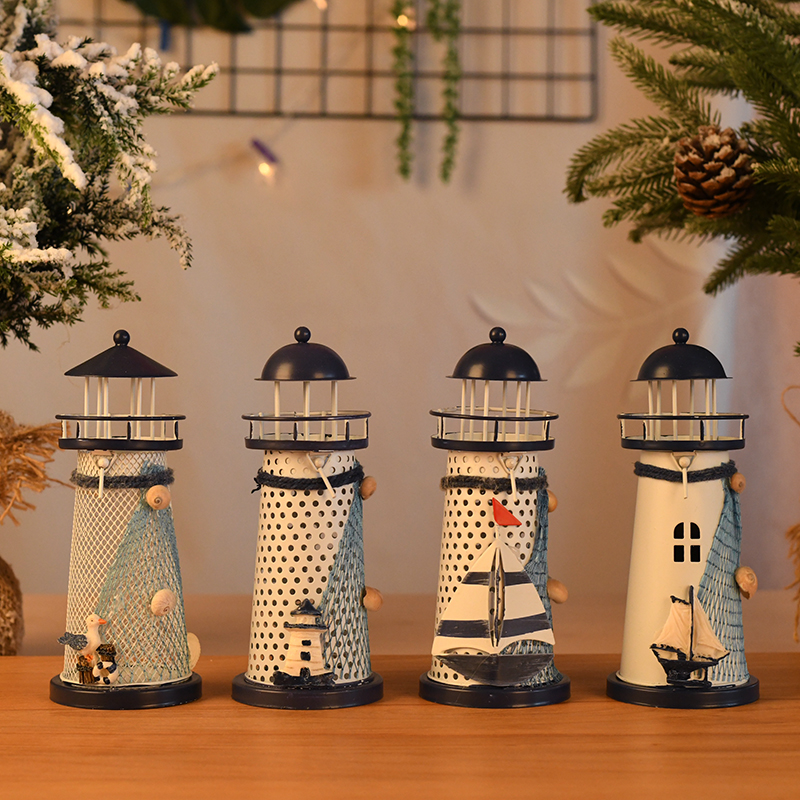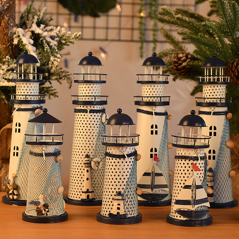 创意地中海风格装饰灯塔瞭望塔建筑模型摆件铁艺儿童房酒柜工艺品