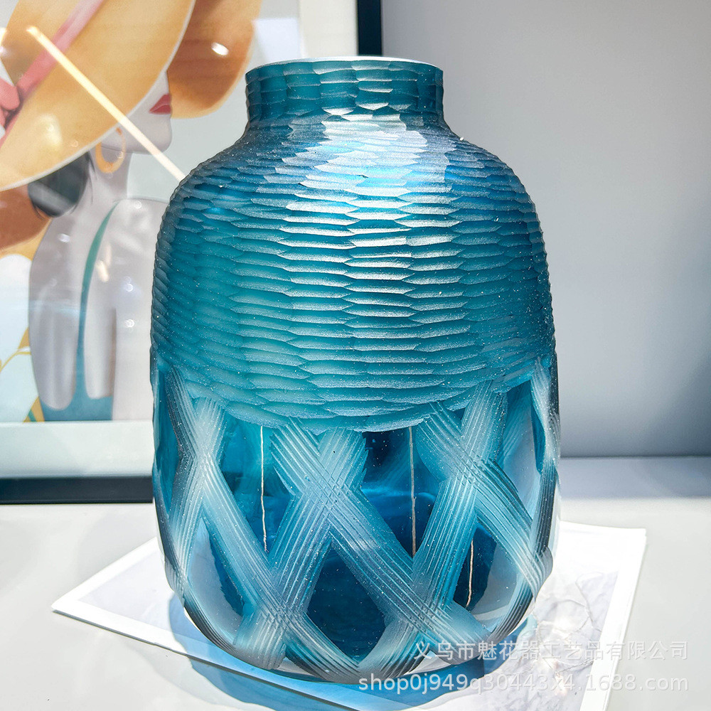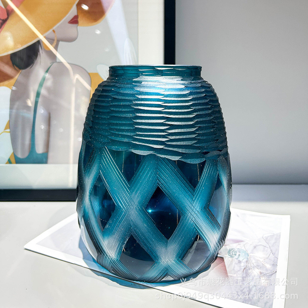 轻奢高级感琉璃蓝色美式花瓶摆件插花器样板间会议室插花高级装饰