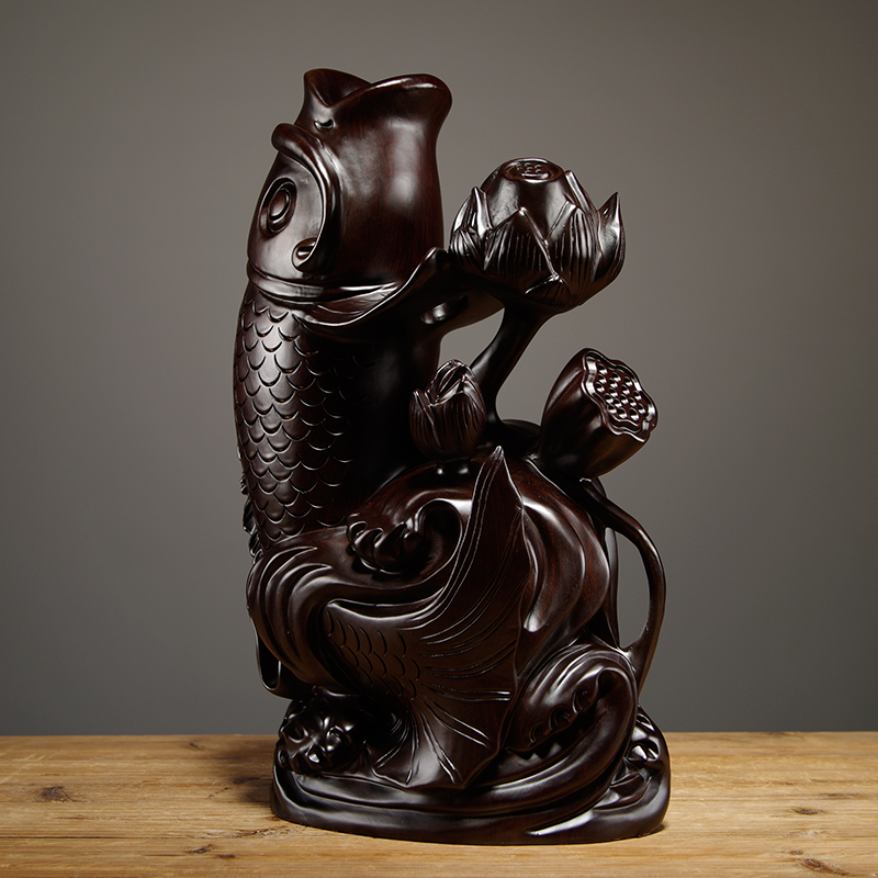 黑檀木雕鱼摆件实木年年有鱼家居客厅玄关酒柜电视柜装饰红木礼品