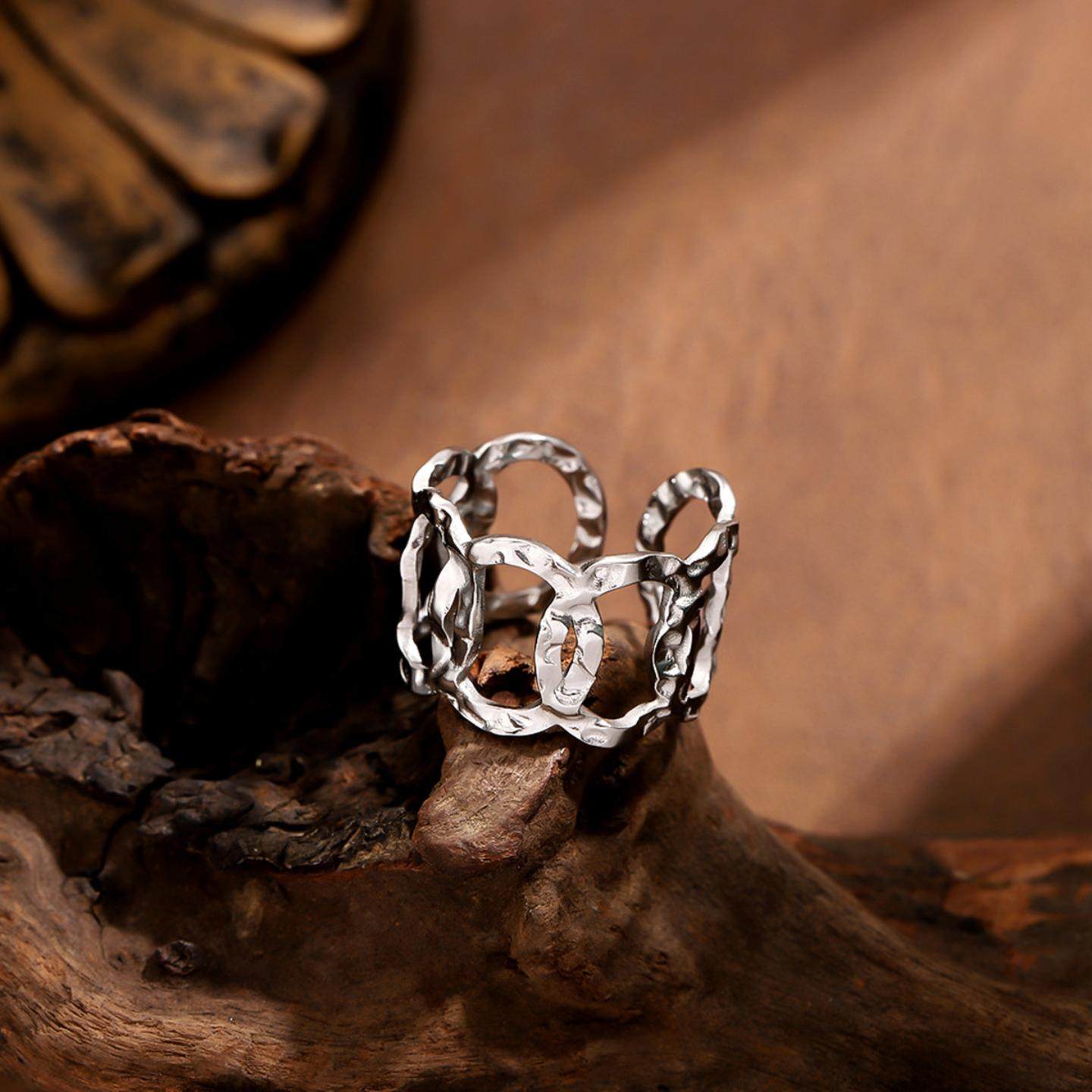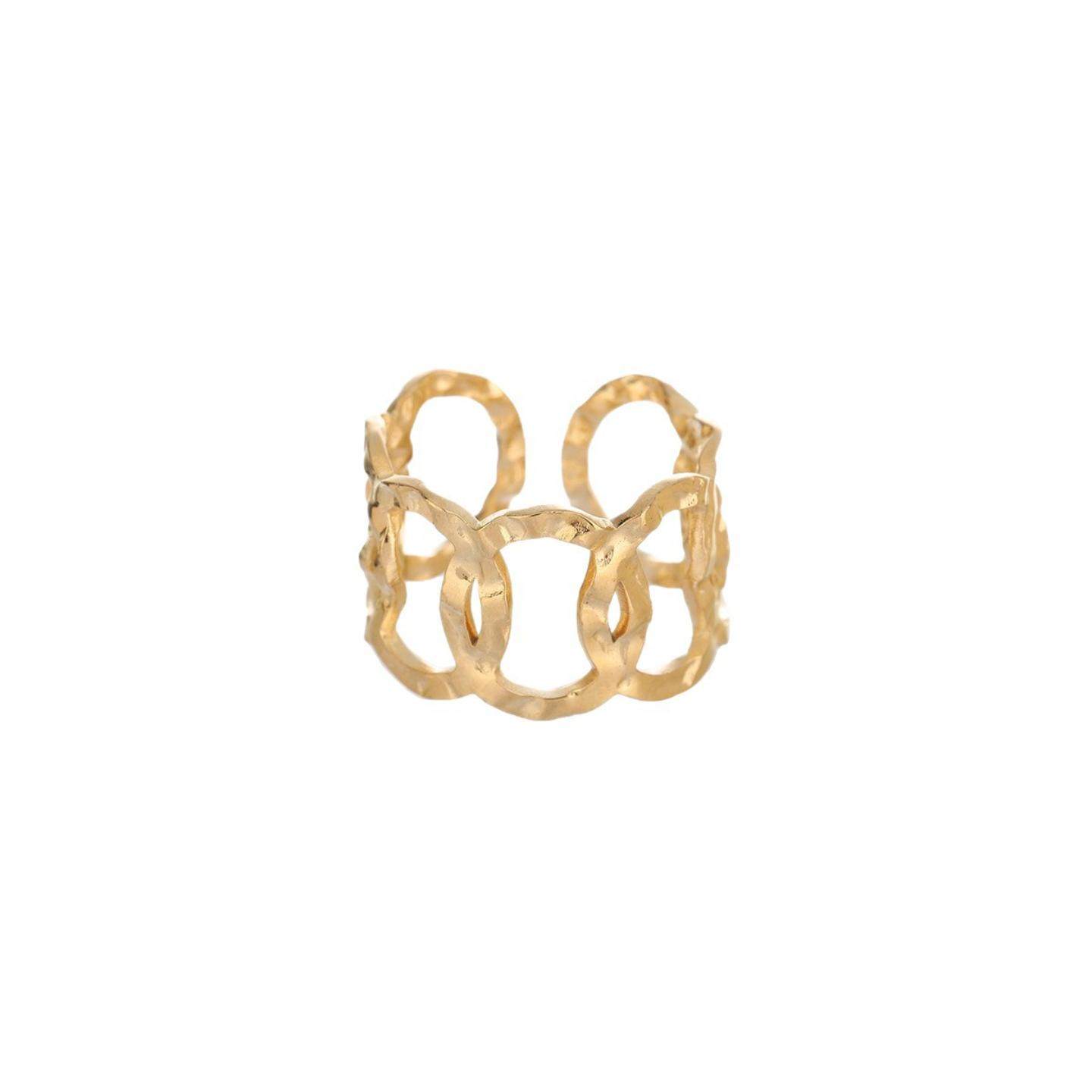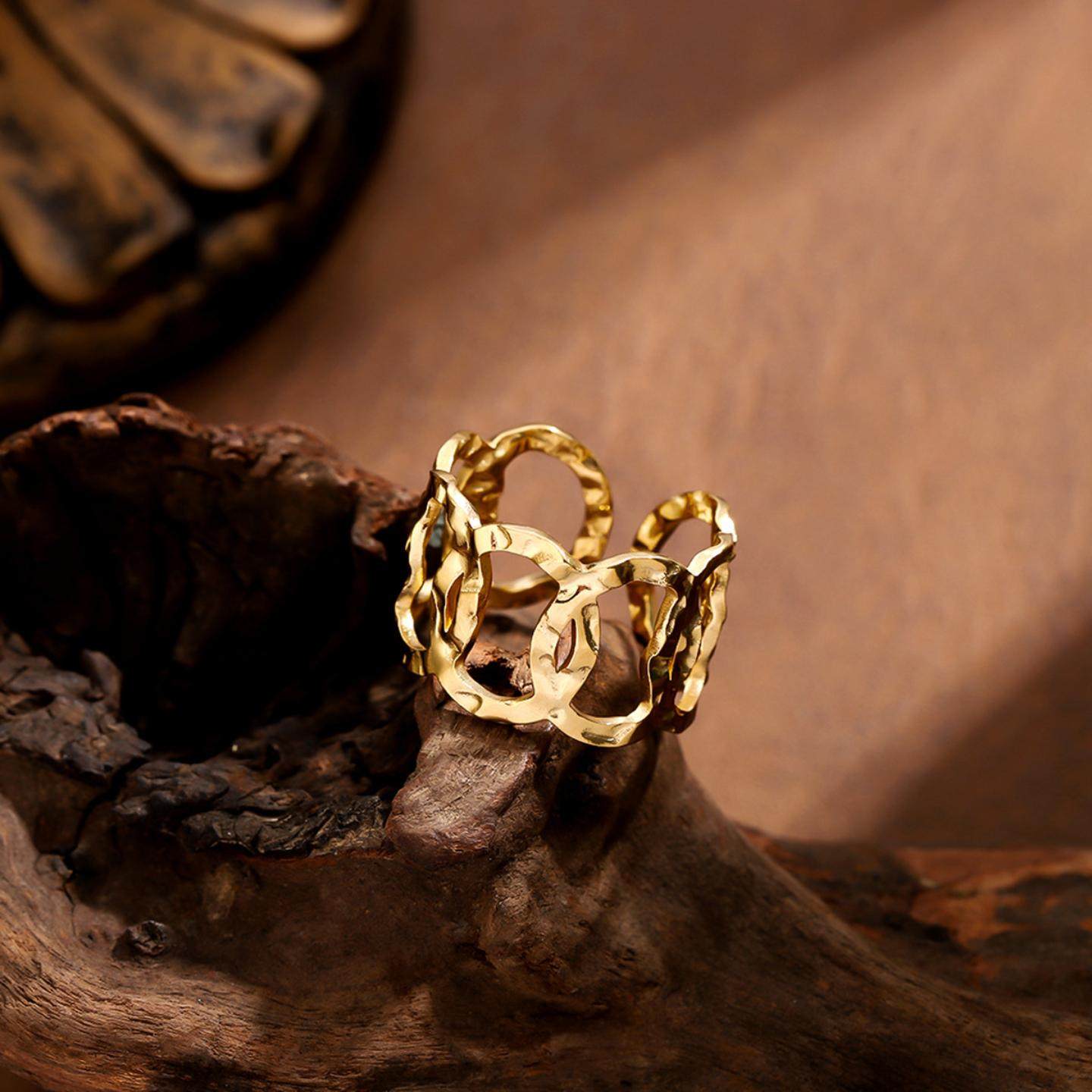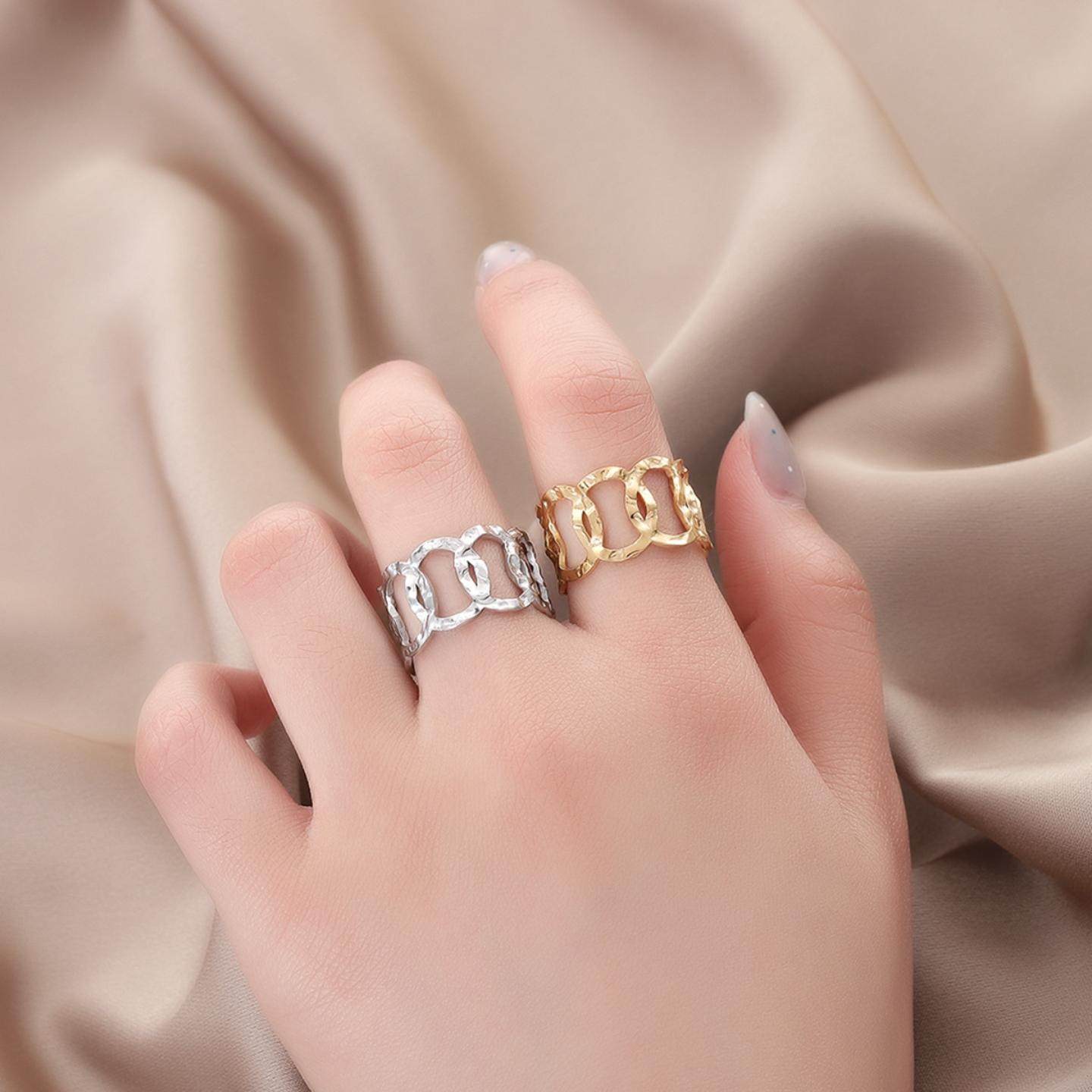 法式复古开链条戒指 欧美时尚开口可调节18K镀金钛钢指环女首饰