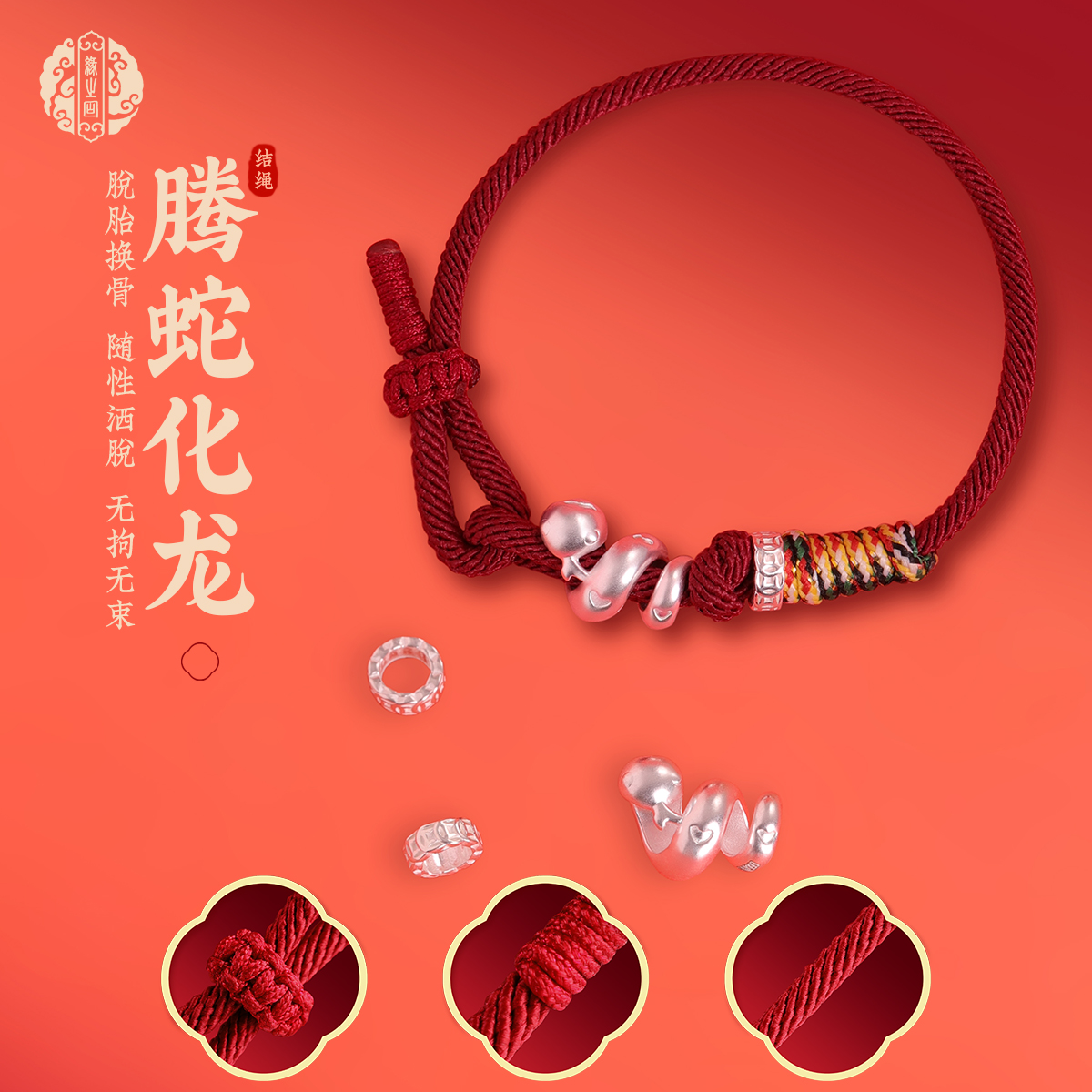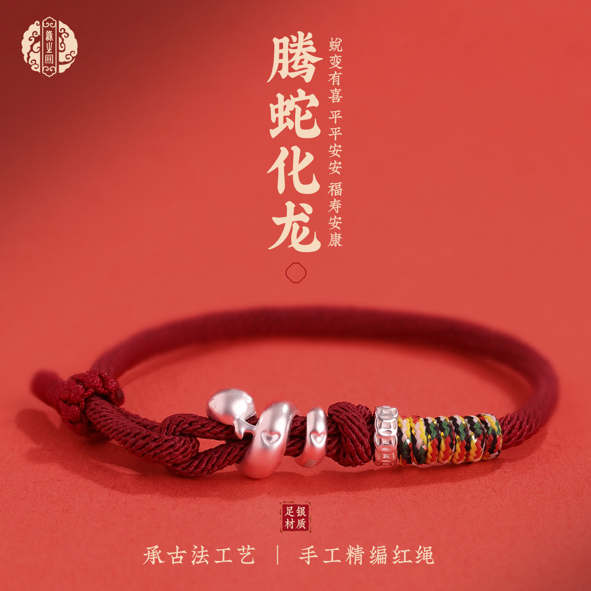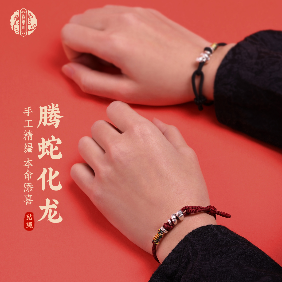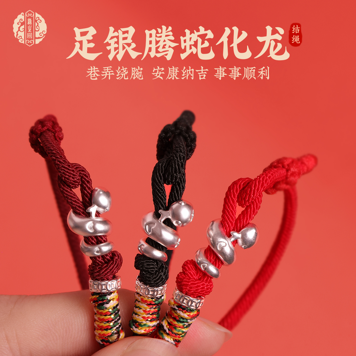 999足银腾蛇化龙手绳女本命年红绳手链纯银编织好运手链高档手串