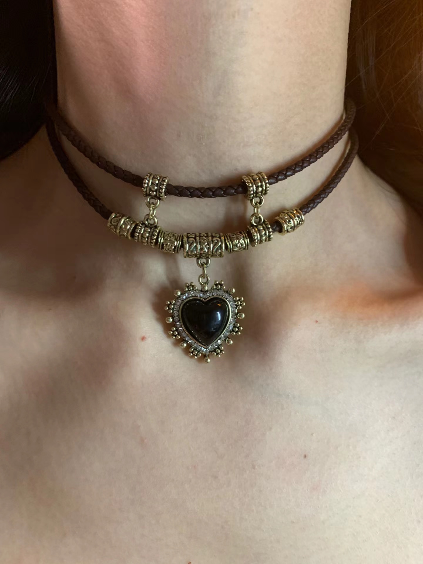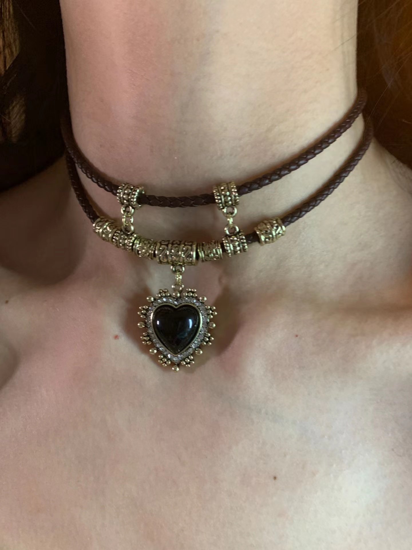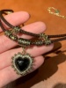 美式黑色桃心choker项圈短款复古风颈链秋冬高级感美德拉毛衣项链