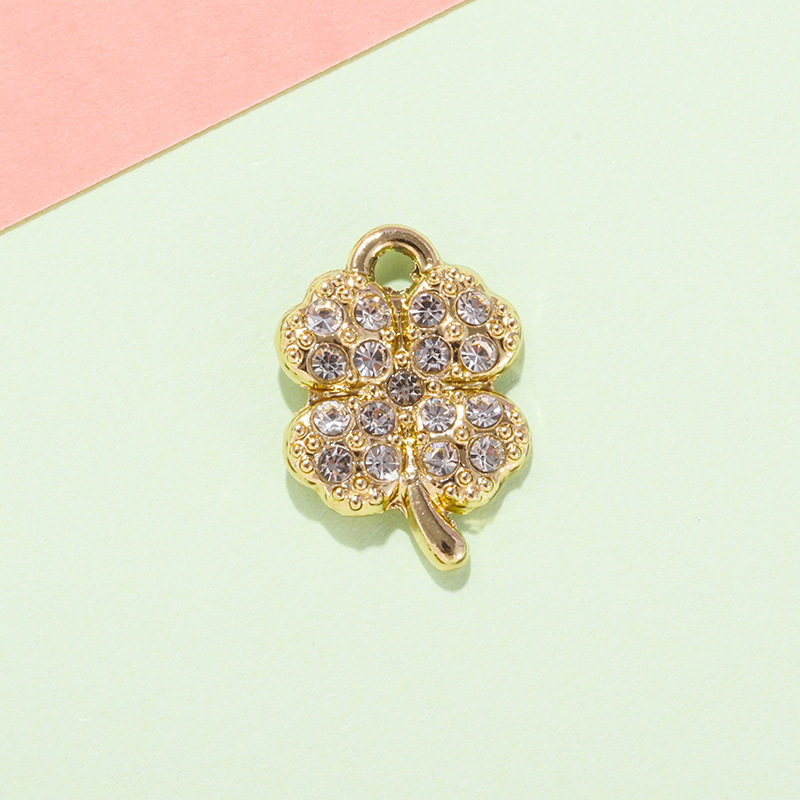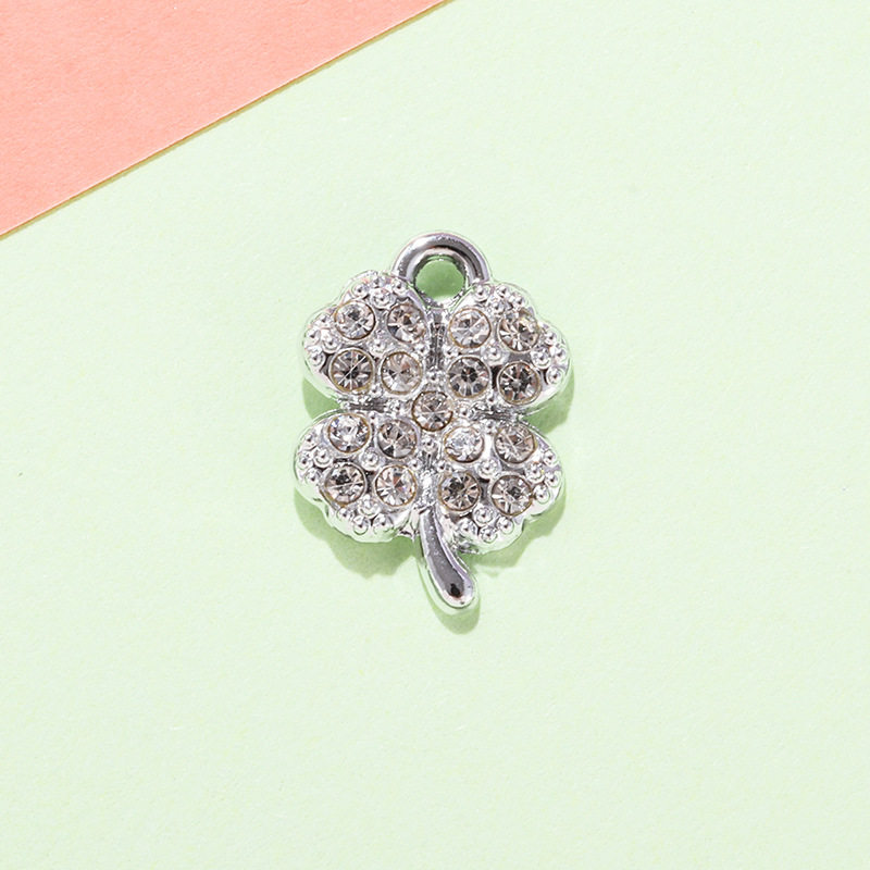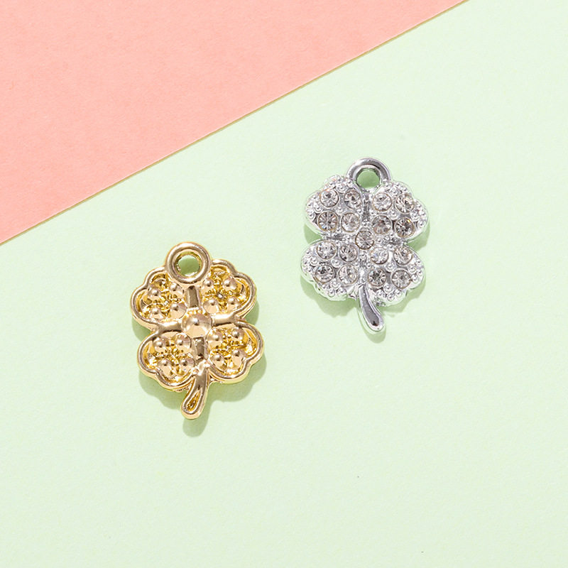 树叶挂件配饰四叶草小吊坠镶钻合金配件diy包包耳饰项链手链服饰