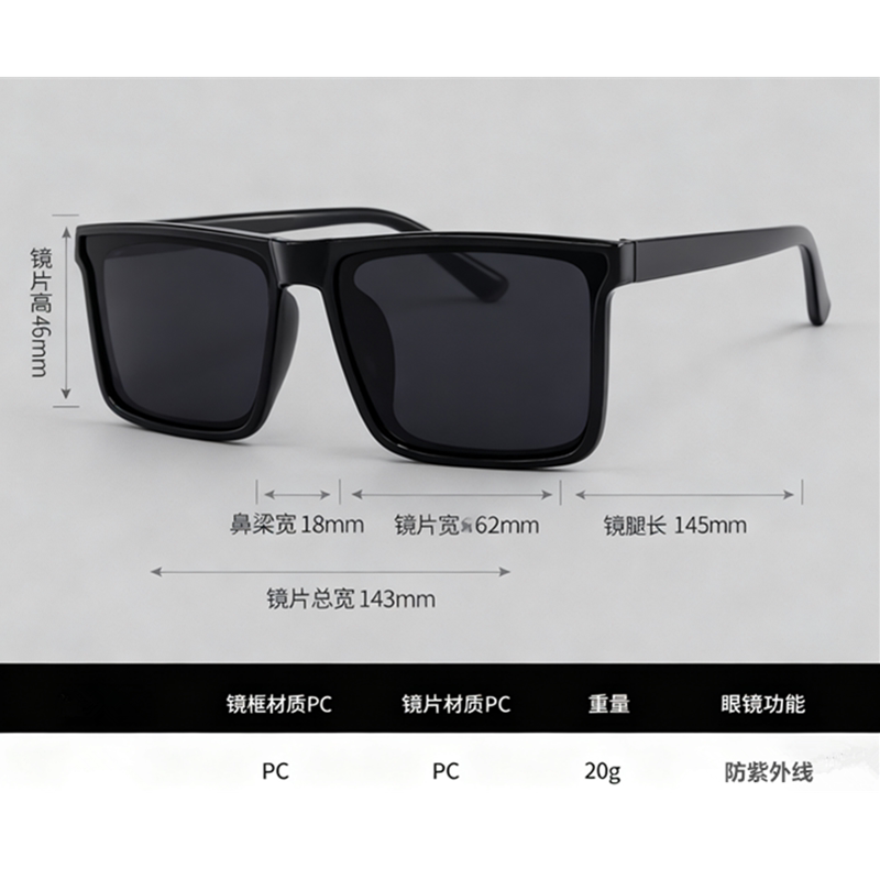 男士太阳眼镜方形墨镜黑色太阳镜遮挡强光防紫外线时尚眼镜女潮流
