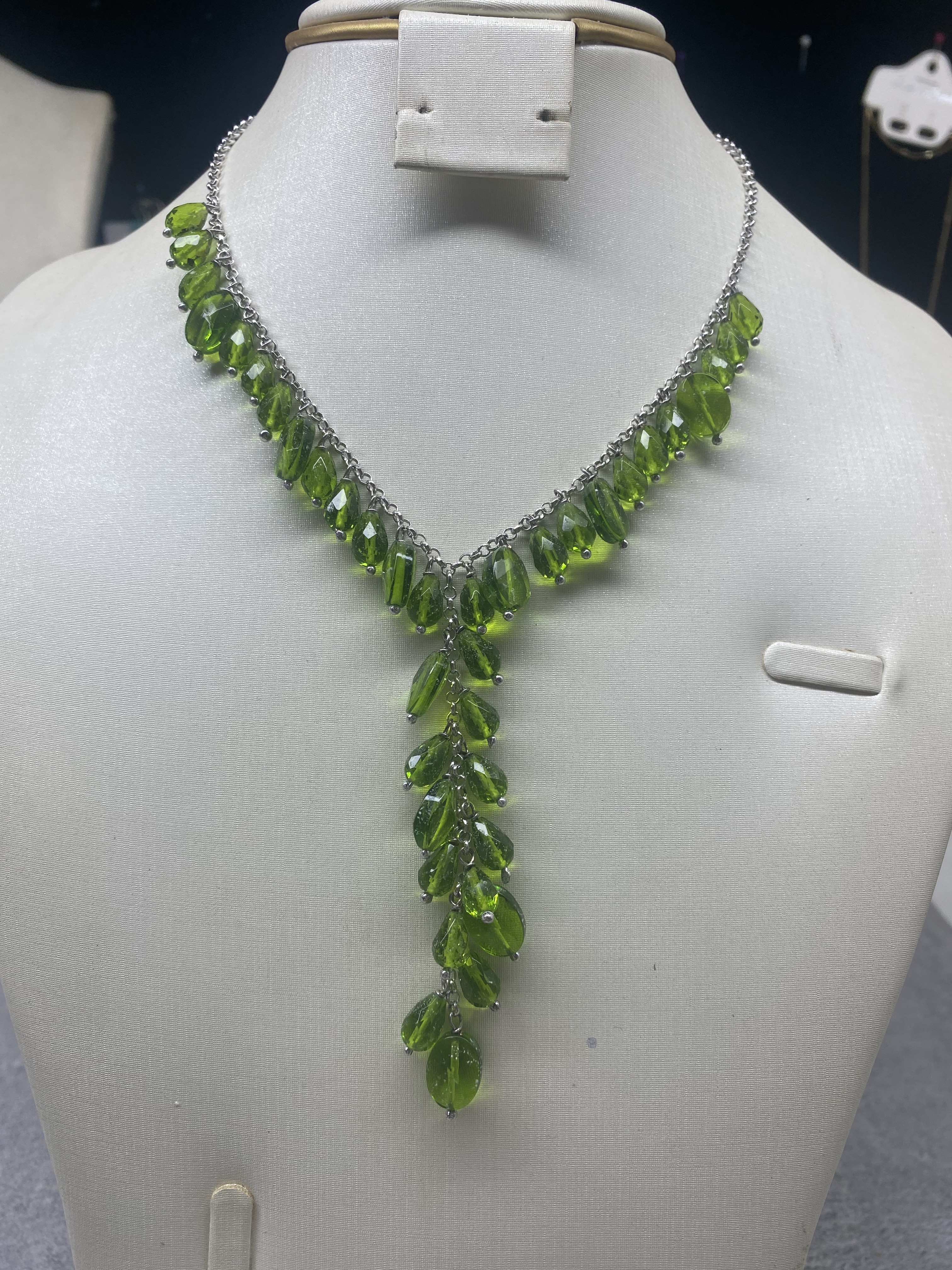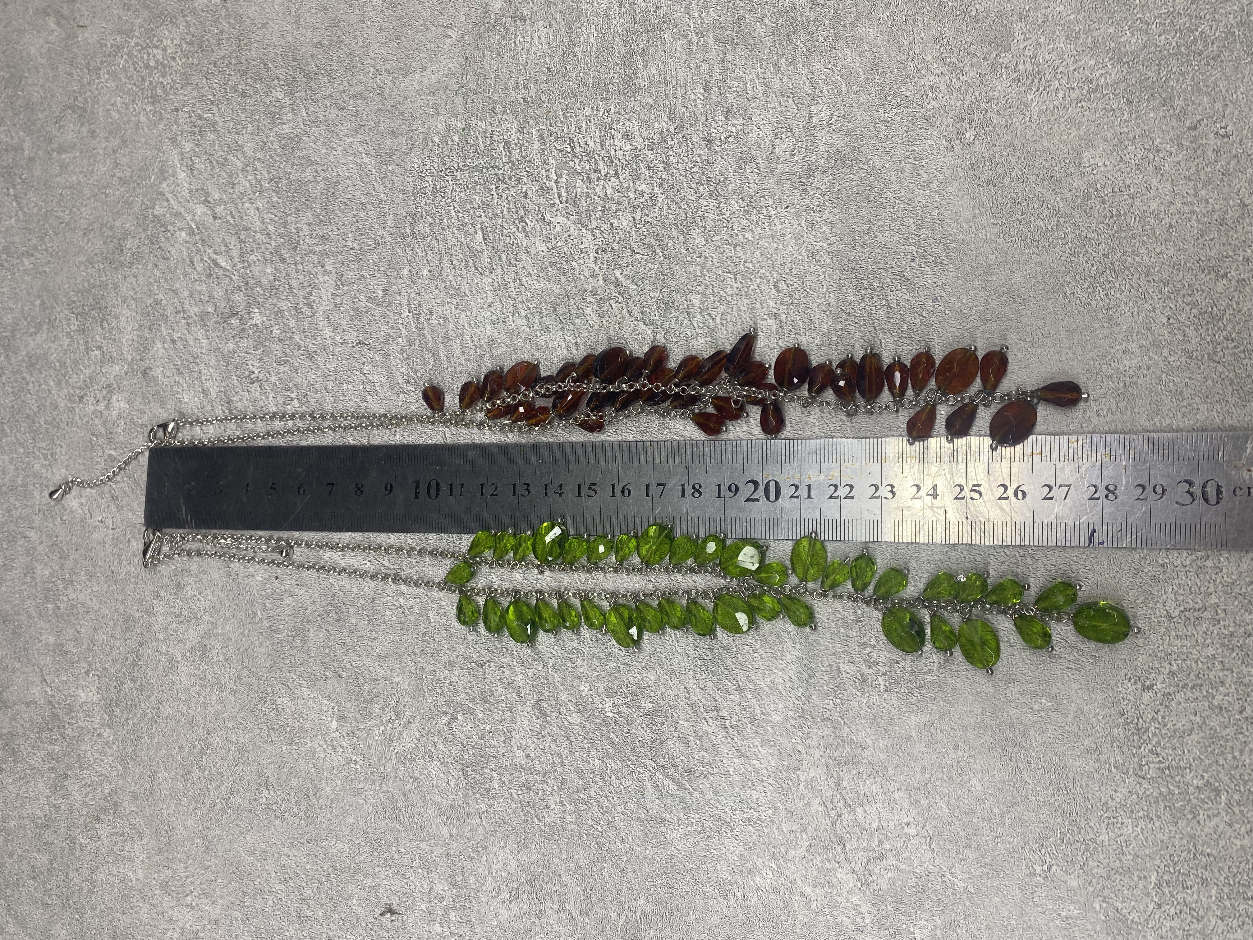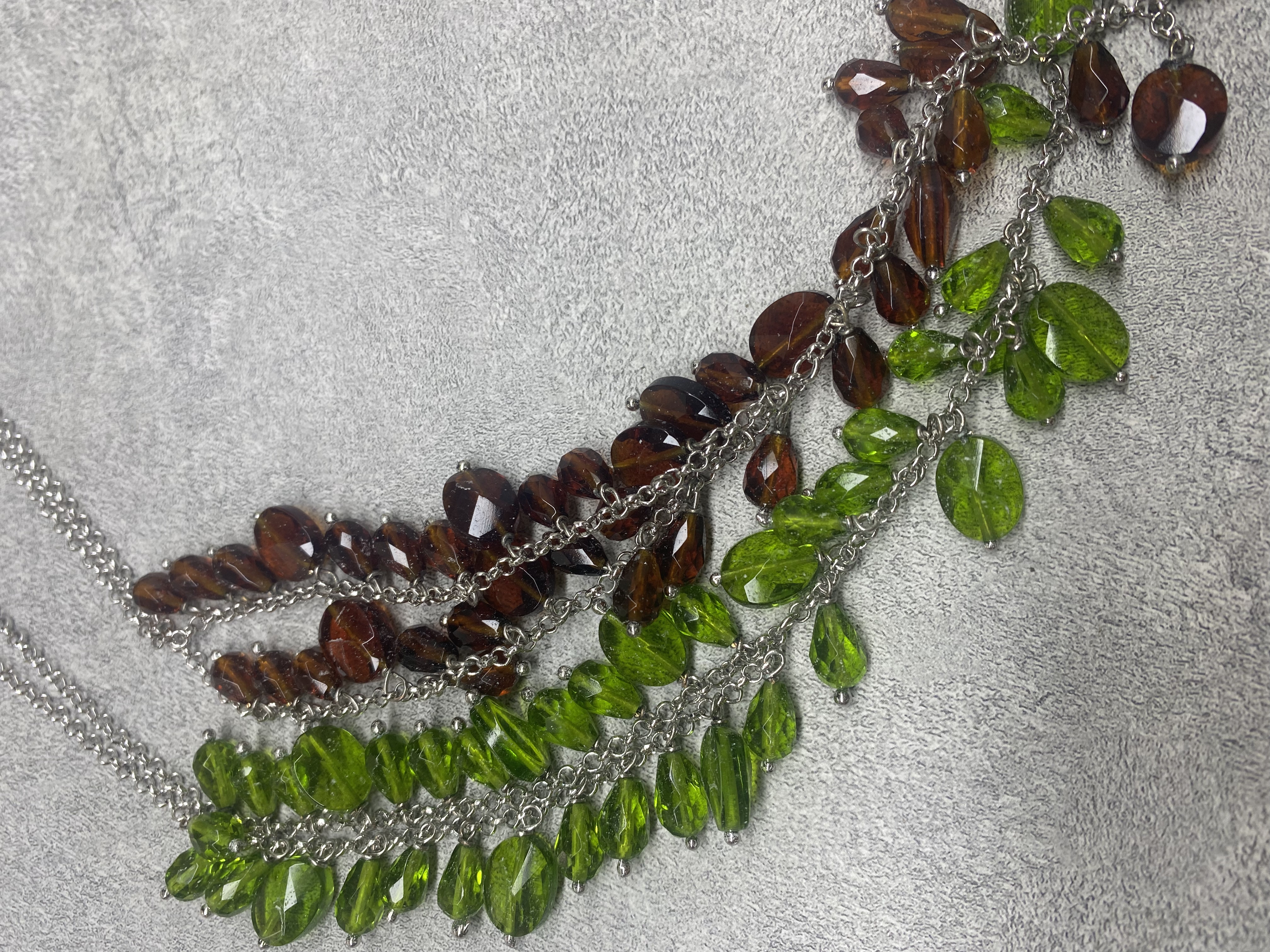 B1原创设计树叶水晶项链 森系清新绿色棕色水滴流苏清新小众项链