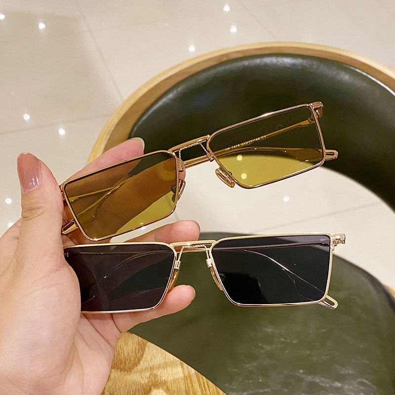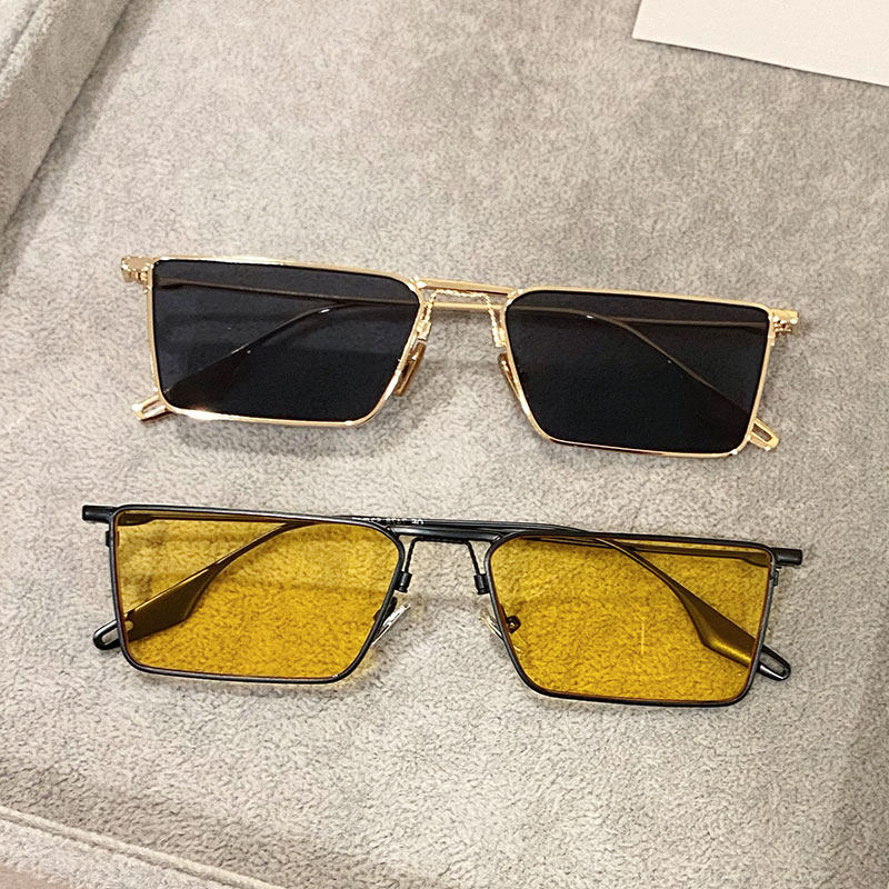 复古长方形墨镜男士潮流痞帅绿色眼镜黄色透明女网红款个性太阳镜