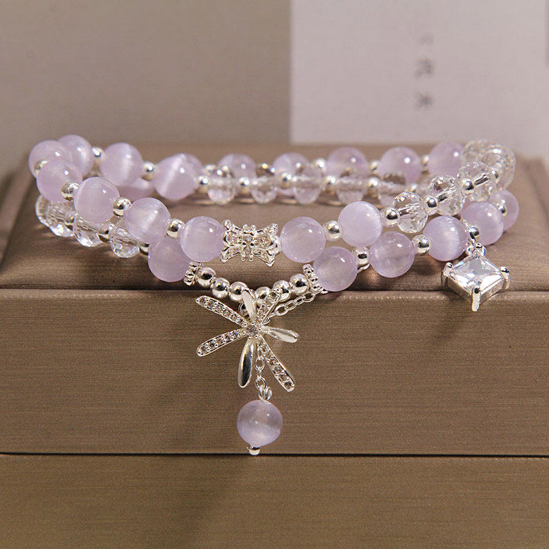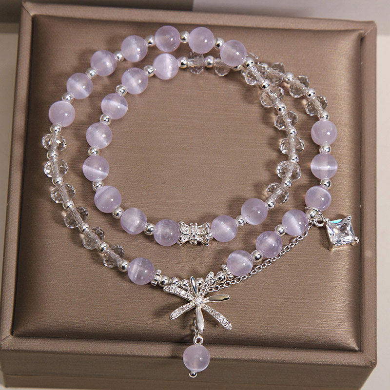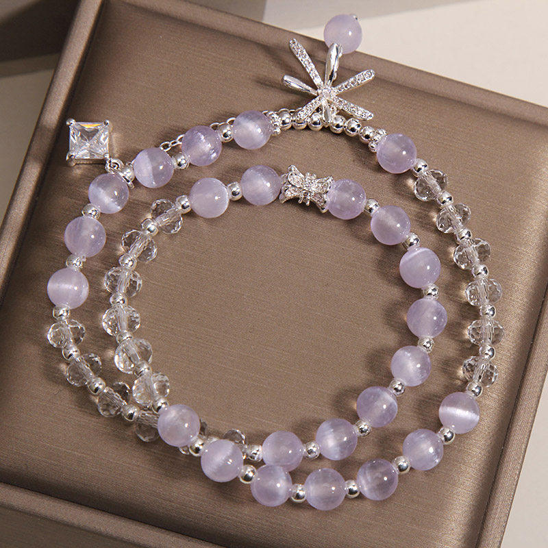 新中式紫色猫眼石水晶手链女轻奢小众高级感双圈叠戴花朵吊坠手串