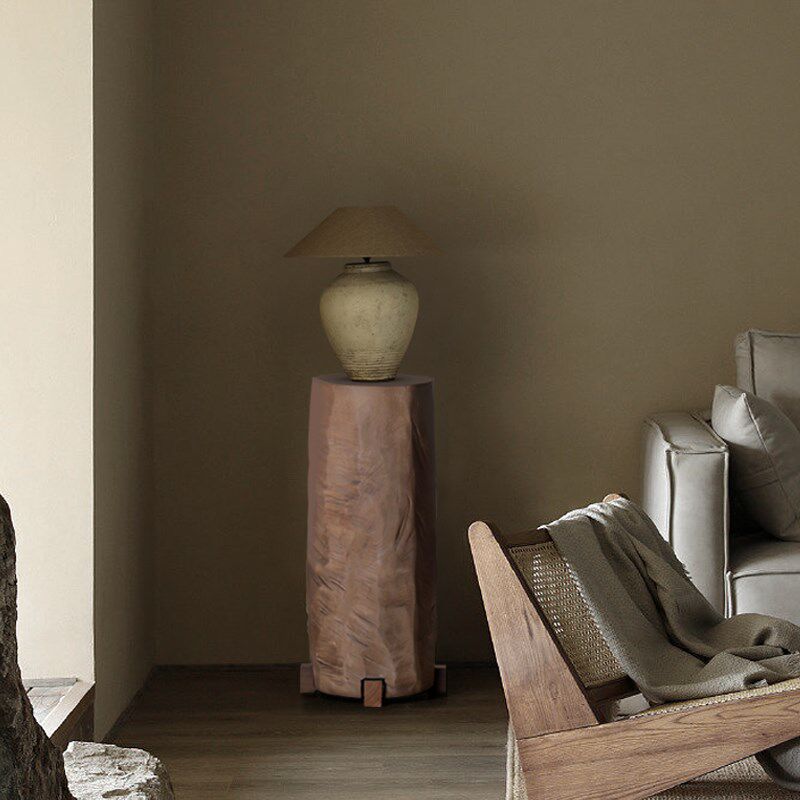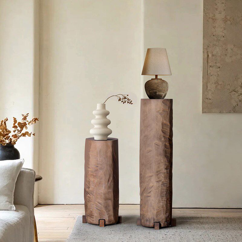 侘寂风实木墩子底座柱子民宿酒店样板间玄关中式复古木雕花架摆件
