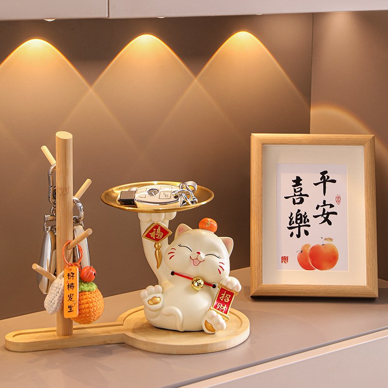 招财猫钥匙收纳玄关摆件家居装饰品入户门鞋柜Q置物架乔迁新居礼