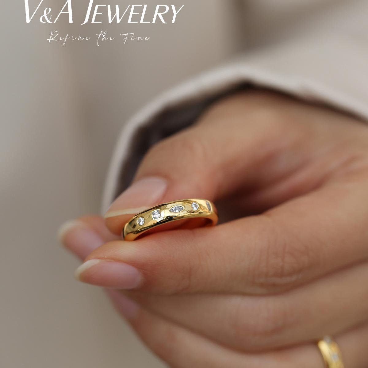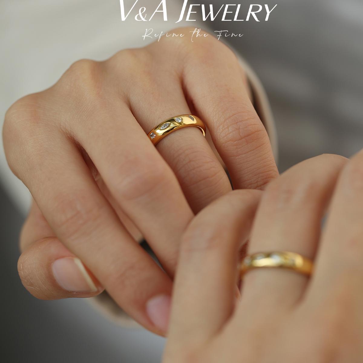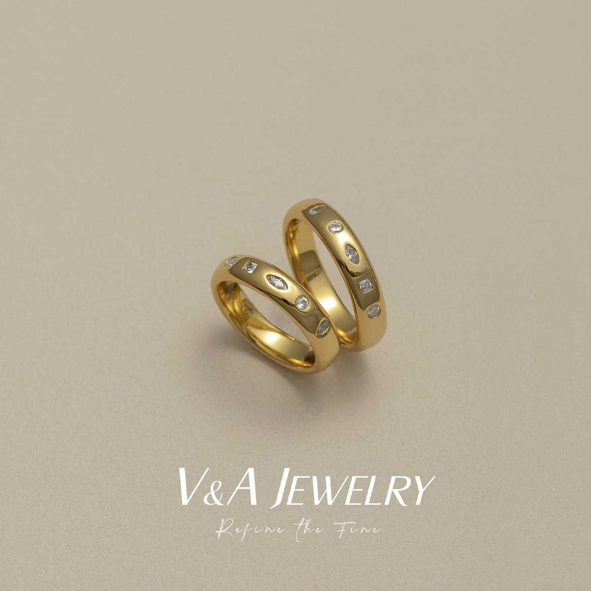 冰糖异形钻拼图游戏 银镀金质感戒指 情侣对戒