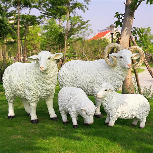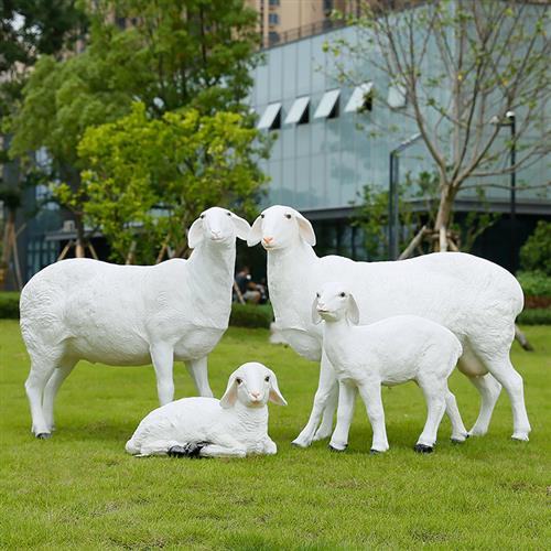 彷真动物湖羊雕塑玻璃纤维绵羊模型摆件庭院子户外草坪园林景观装