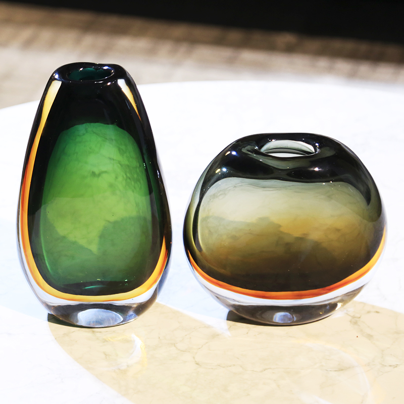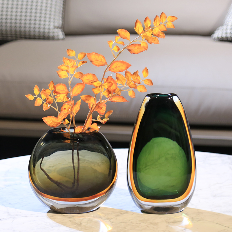 超厚轻奢琉璃花瓶玻璃装饰客厅酒柜玄关酒店森林黄昏摆件餐桌花器