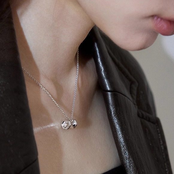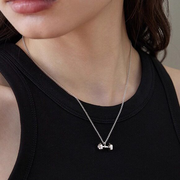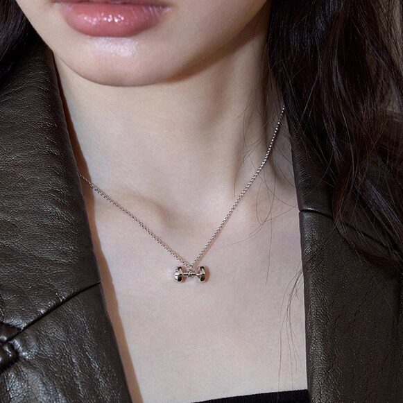 LLab 通体s925 镶钻蝴蝶结高能量哑铃项链健身运动时髦杠铃片吊坠
