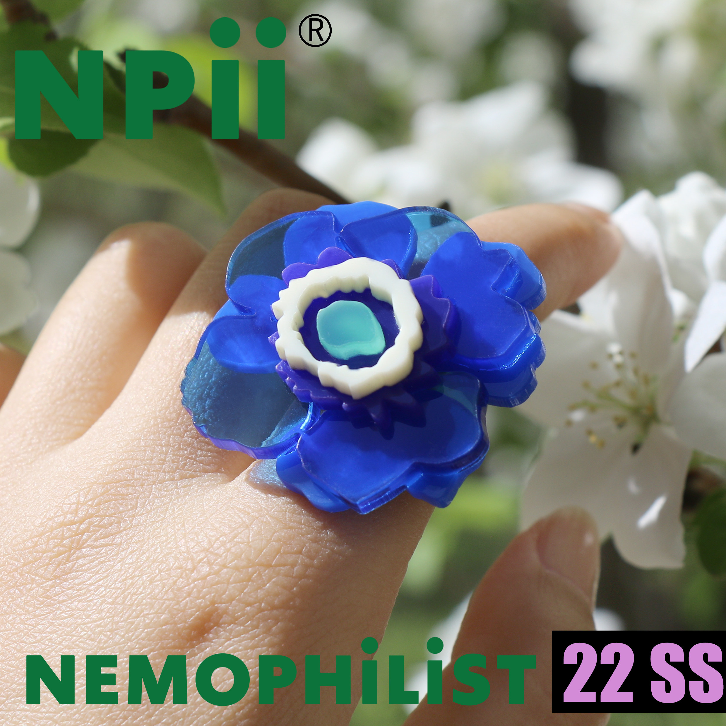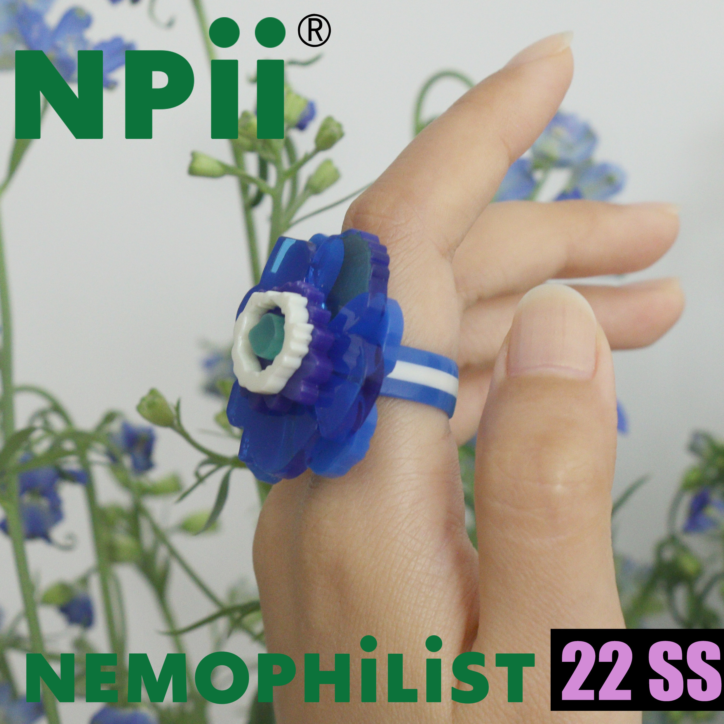 NPii22SS银莲花戒指蓝色花花元素亚克力设计师指环