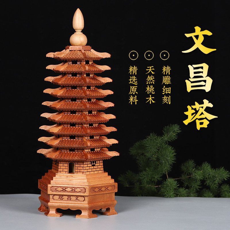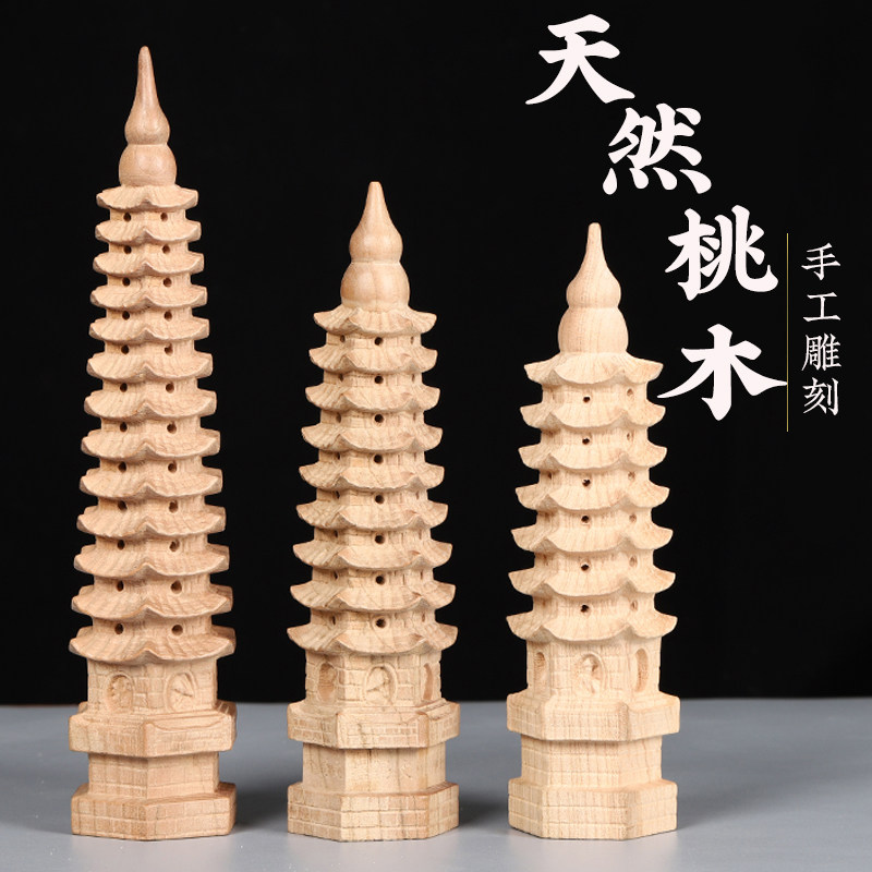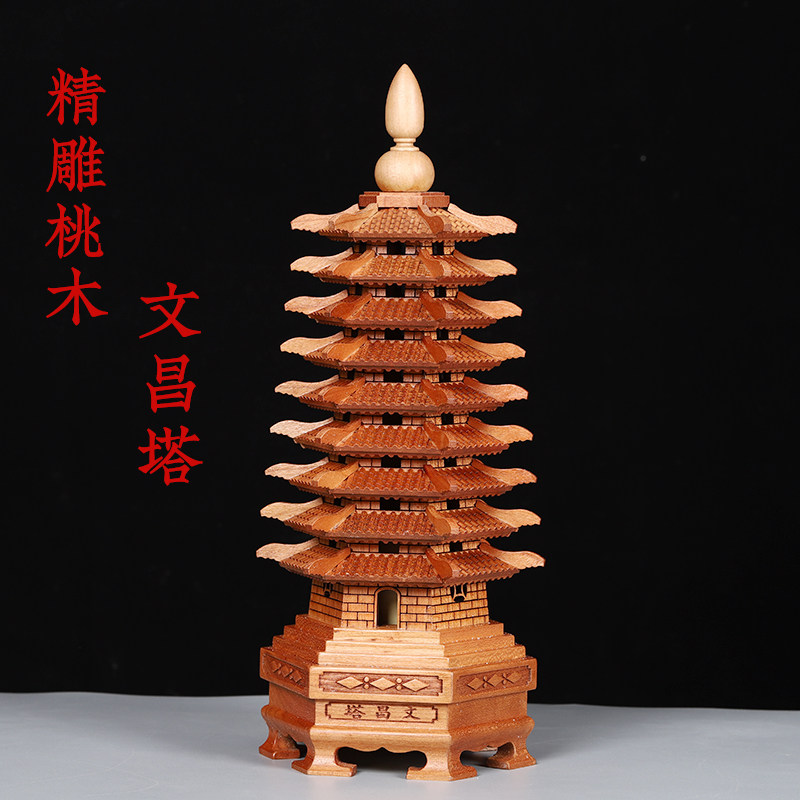 天然13层木质桃木文昌塔九层十三层精雕小摆件书房书包书桌办公室
