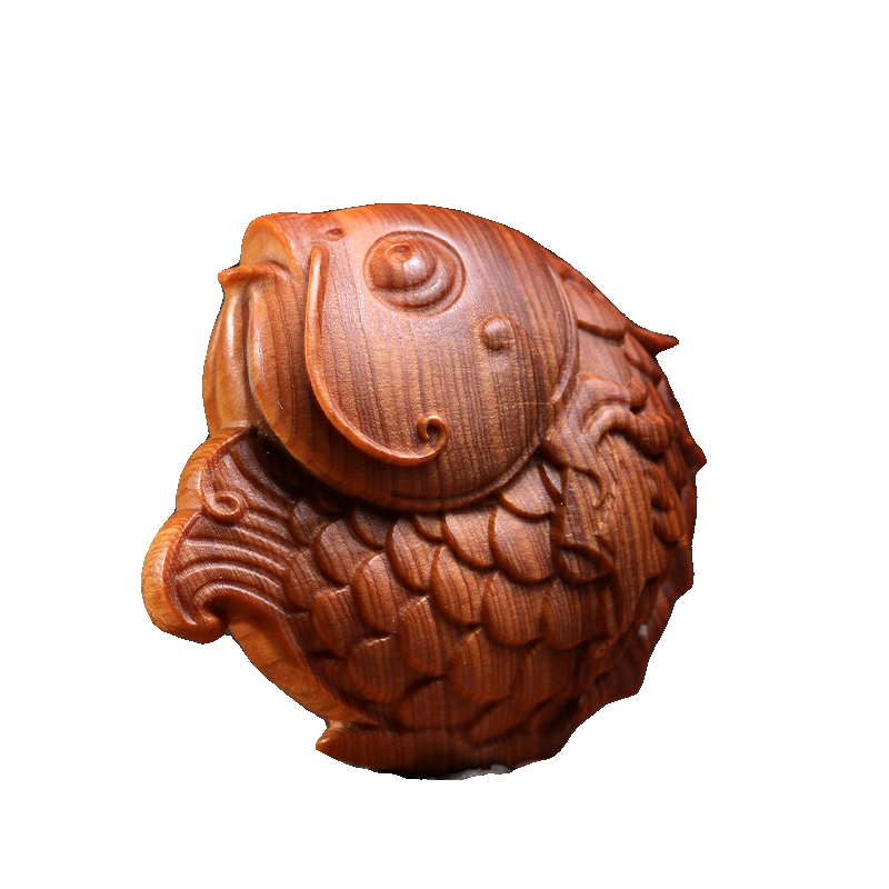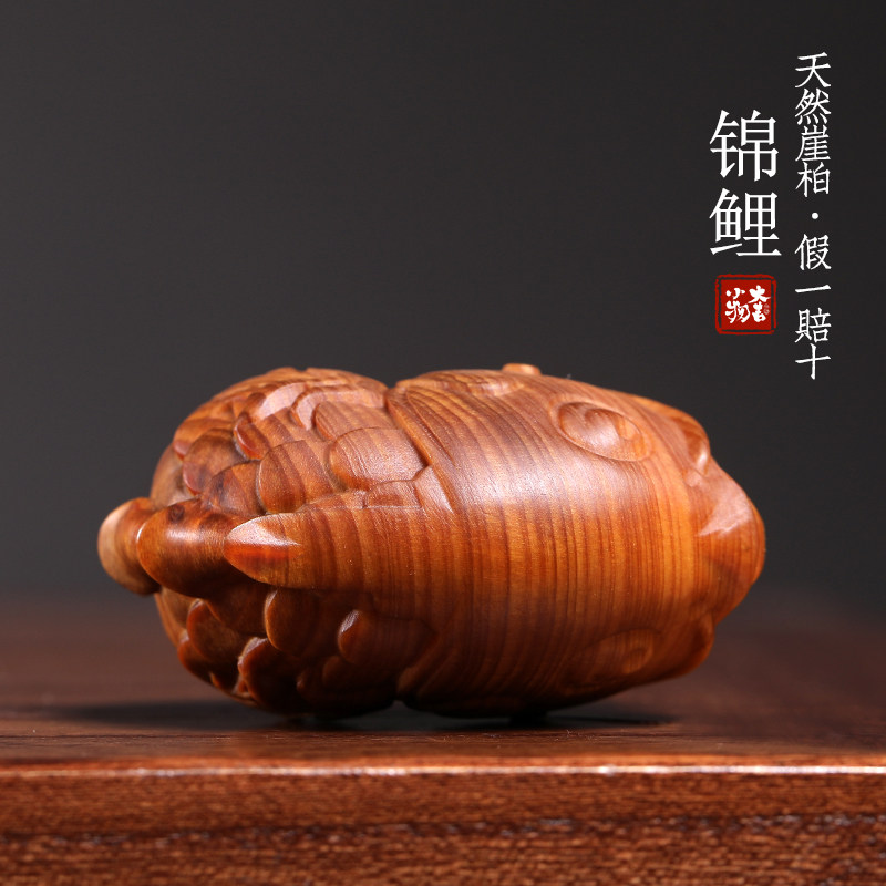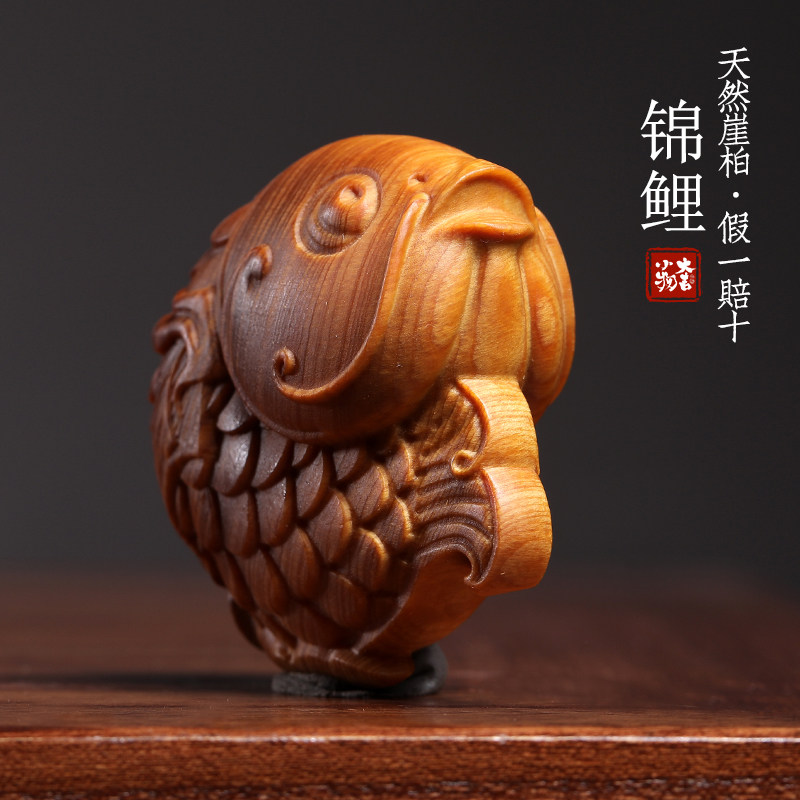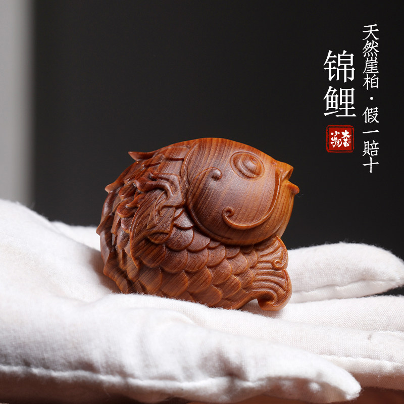 天然崖柏木锦鲤文玩手把件伴手礼盘玩玩具鱼跃龙门创意桌面小摆件