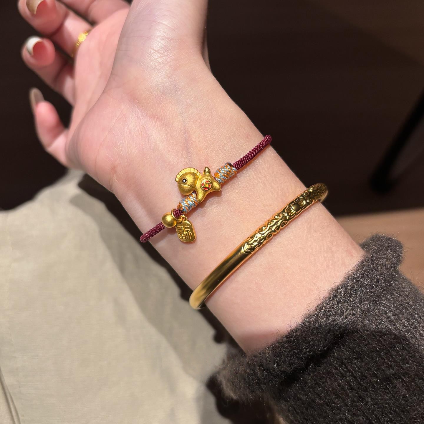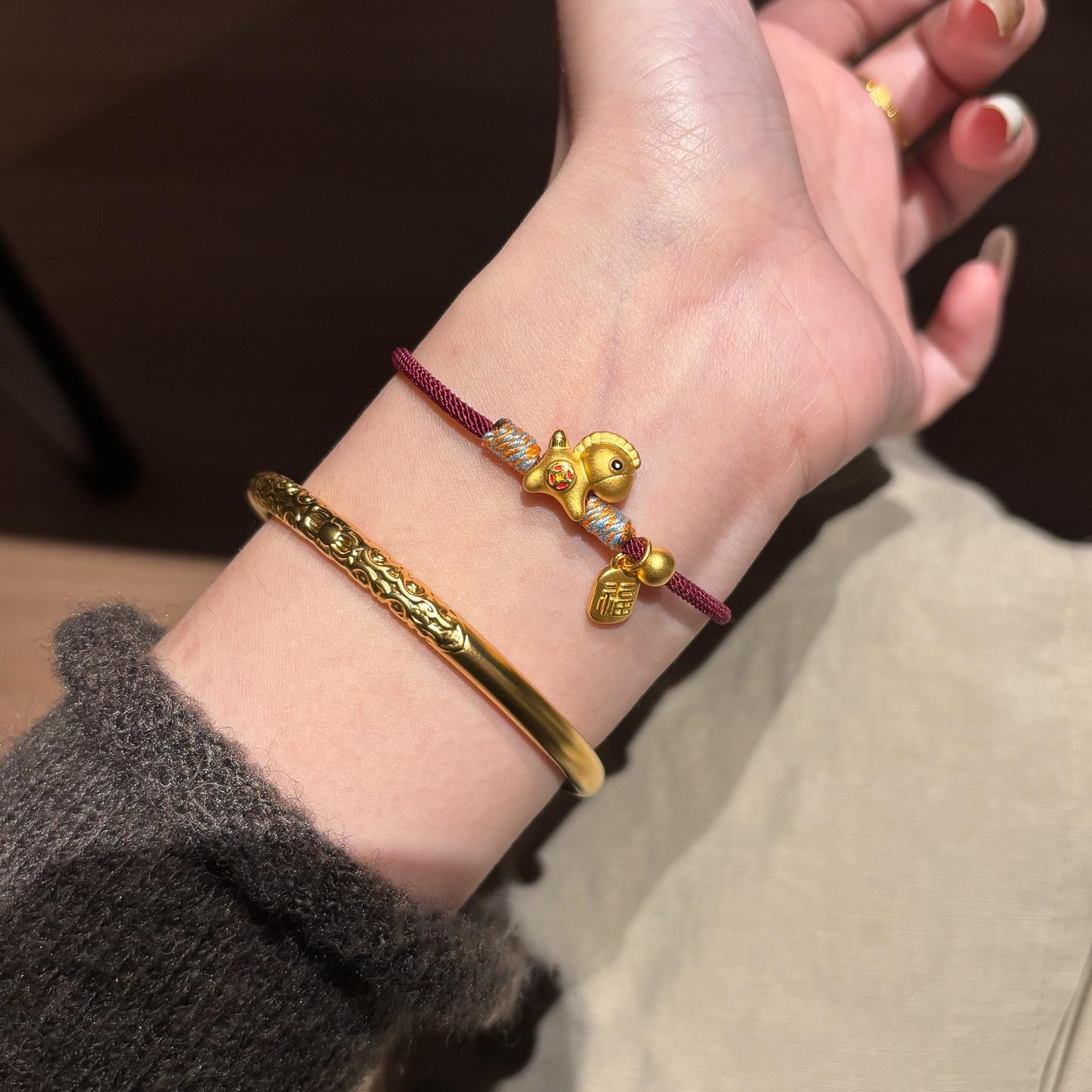 生肖金色小马红色编绳手链女款轻奢小众精致新中式福牌本命年手饰