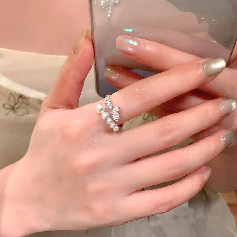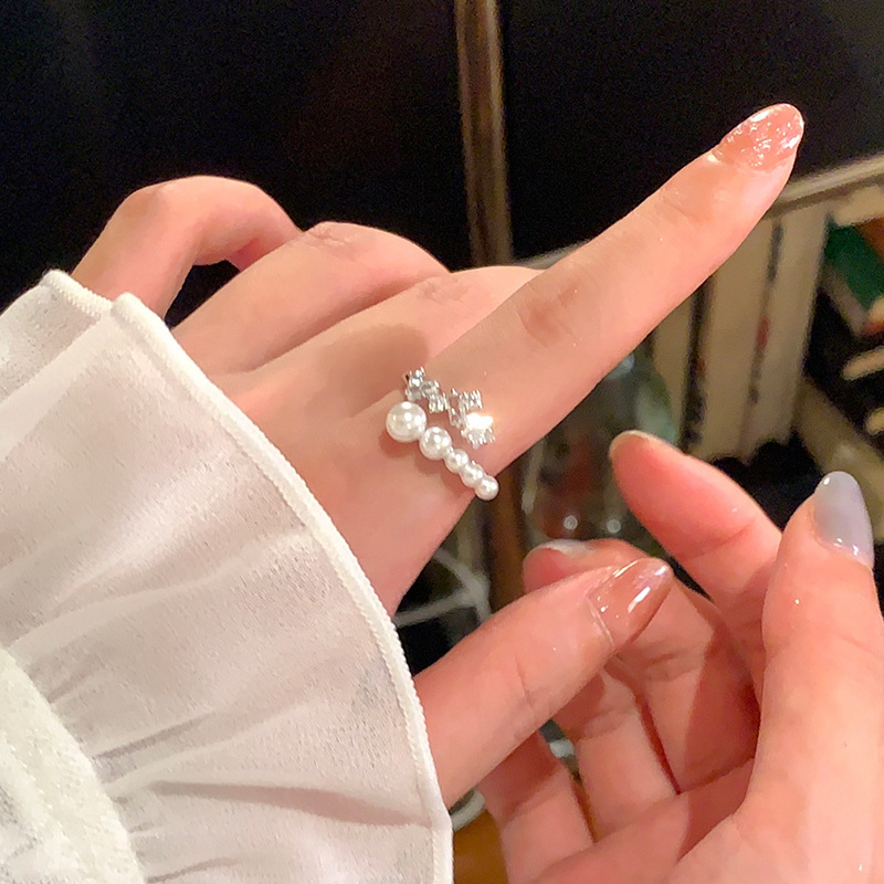 精致繁星珍珠锆石开口戒指女款小众设计轻奢高级感食指戒百搭指环