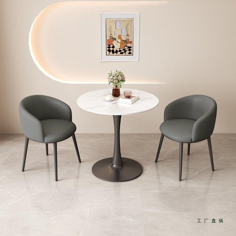 北欧轻奢岩板洽谈桌椅接待办公室会客阳台休闲小圆桌公寓餐桌家用