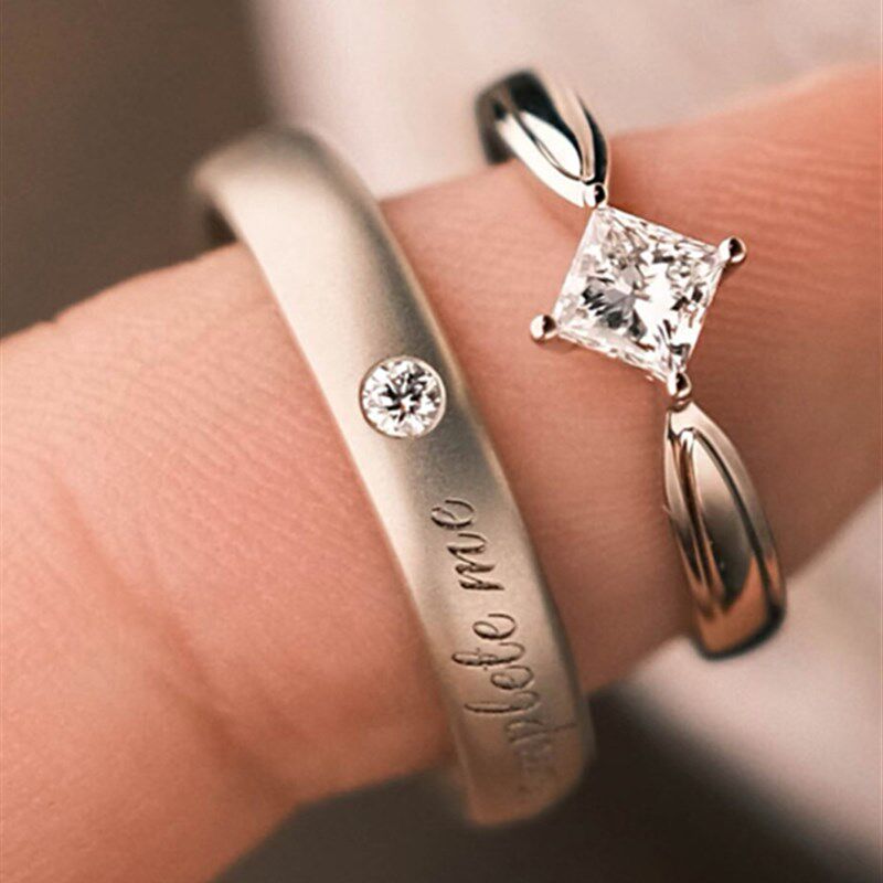 Z先生原创磨砂925银培养钻石情侣戒指银Q白求婚时尚简单戒指