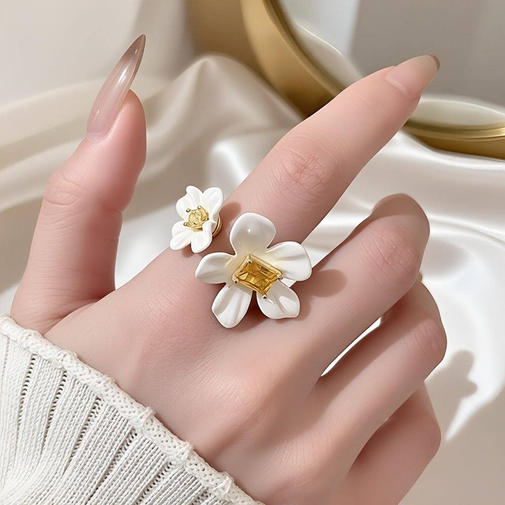 夸张白色花瓣开口锆石戒指女秋冬轻奢ins小众设计高级食指戒指环