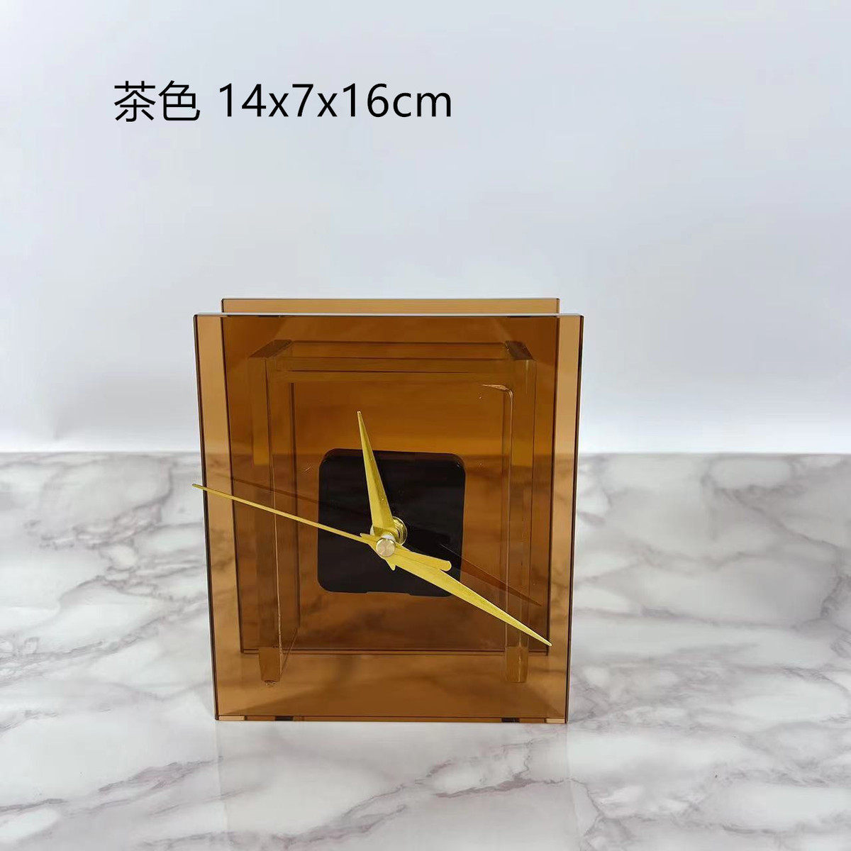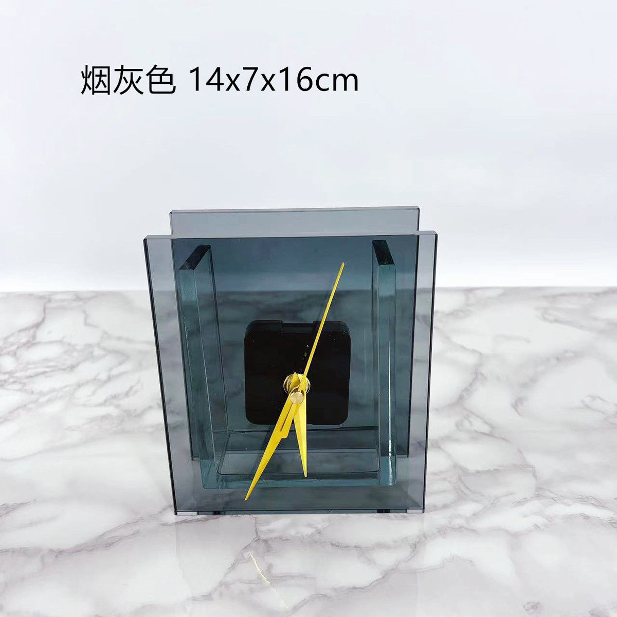 现代北欧样板房茶色烟灰水晶玻璃客厅摆件时钟摆钟饰品金属