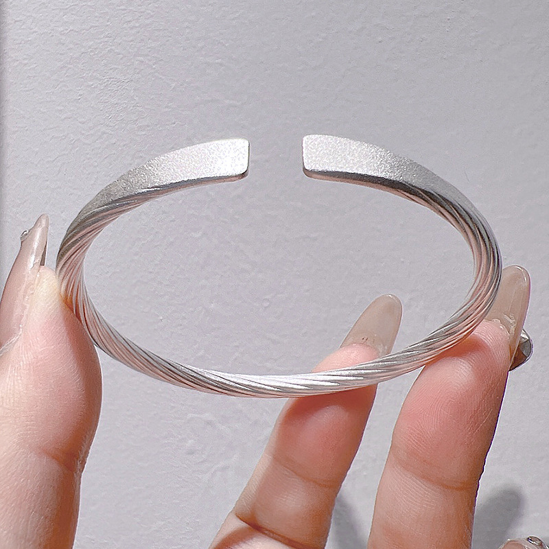 莫比乌斯银镯子小众实心手环礼物手镯女古法扭纹扁尾999足纯银