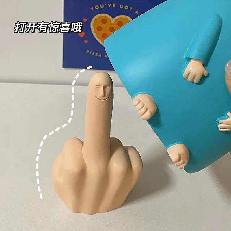 搞笑中指摆件小蓝胖微笑解压整蛊玩具桌面安抚情绪工位女沙雕礼物