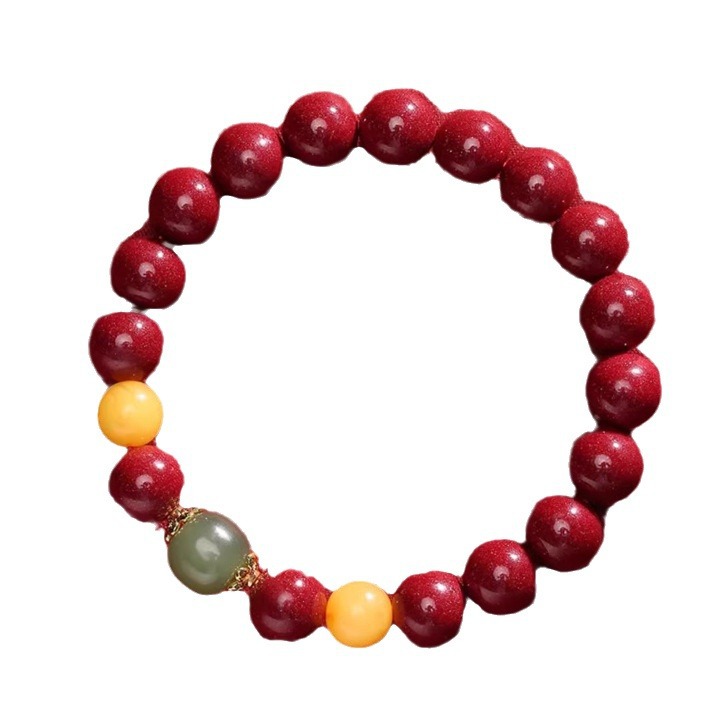用原矿天然朱砂手串女蜜蜡紫金砂原矿和田玉本命年转运珠手链礼物