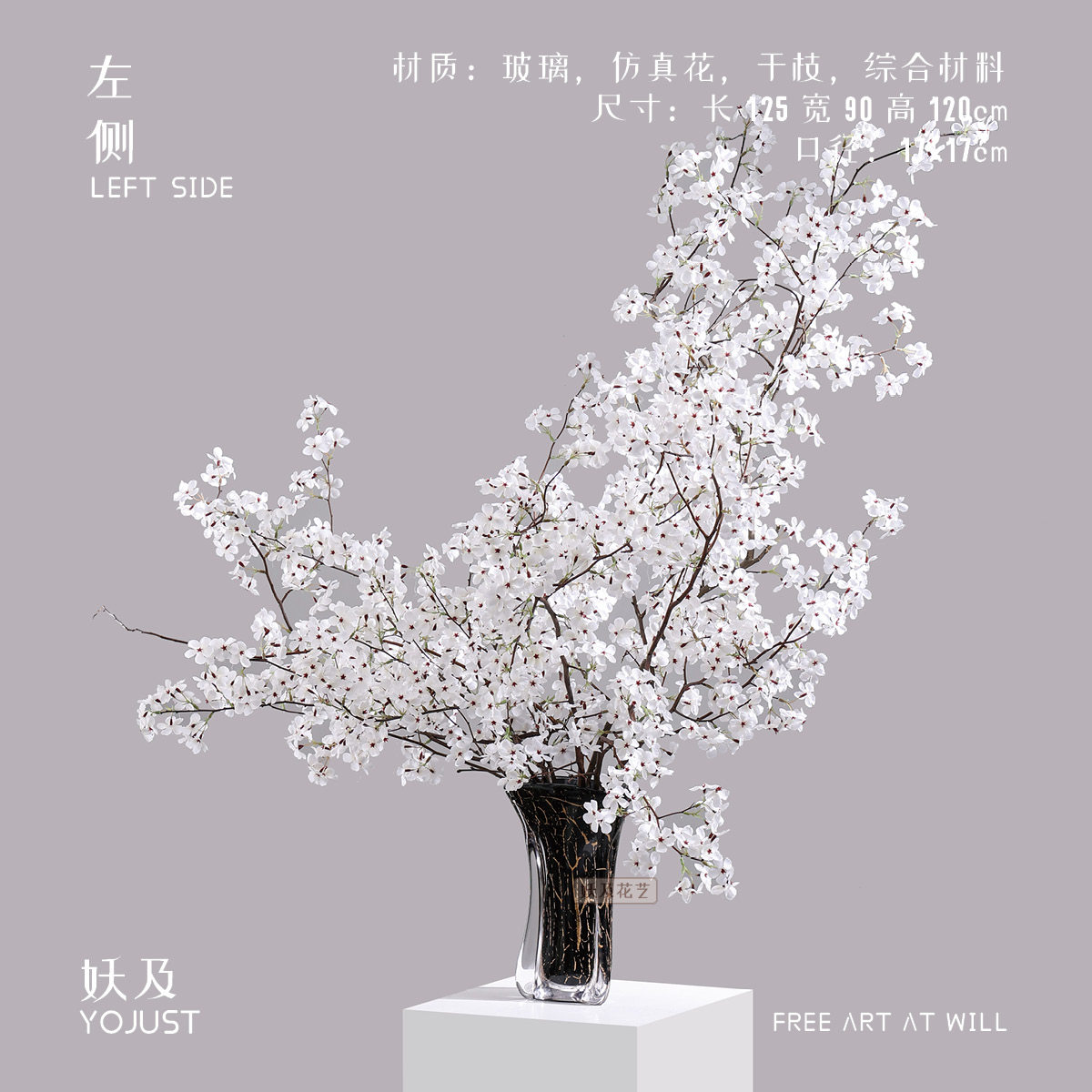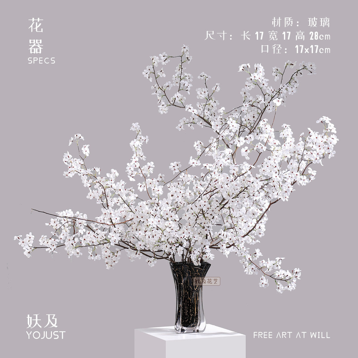 妖及 白色系仿真花干枝玻璃花瓶 售楼处酒店样板房玄关民宿摆件