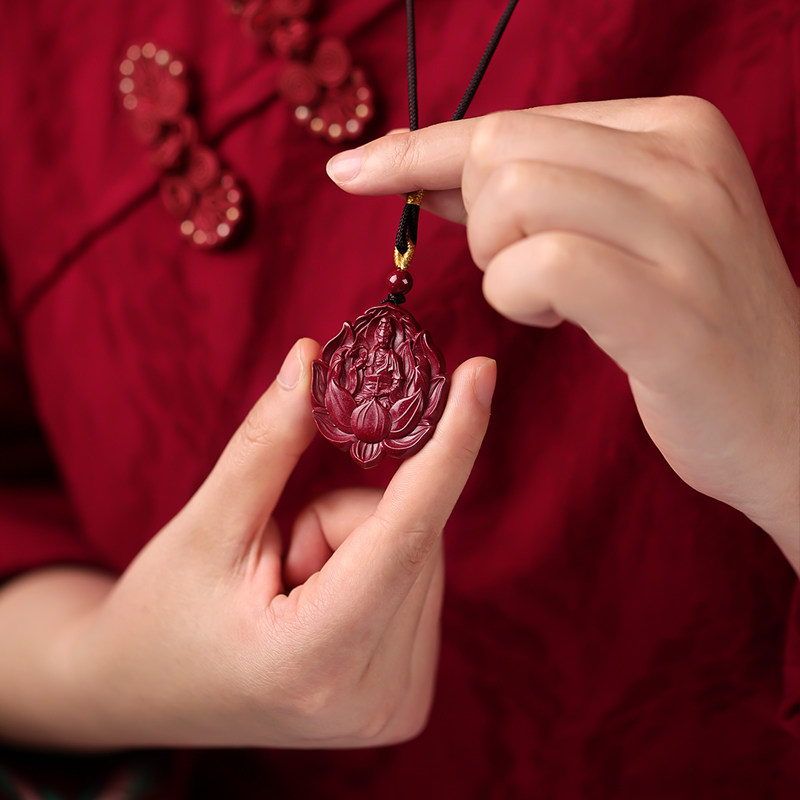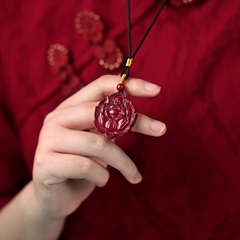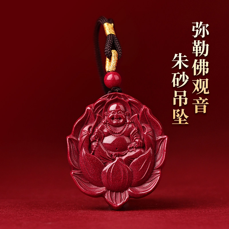 朱砂吊坠正品官方旗舰店弥勒佛吊坠男士观音项链女款莲花笑佛挂坠
